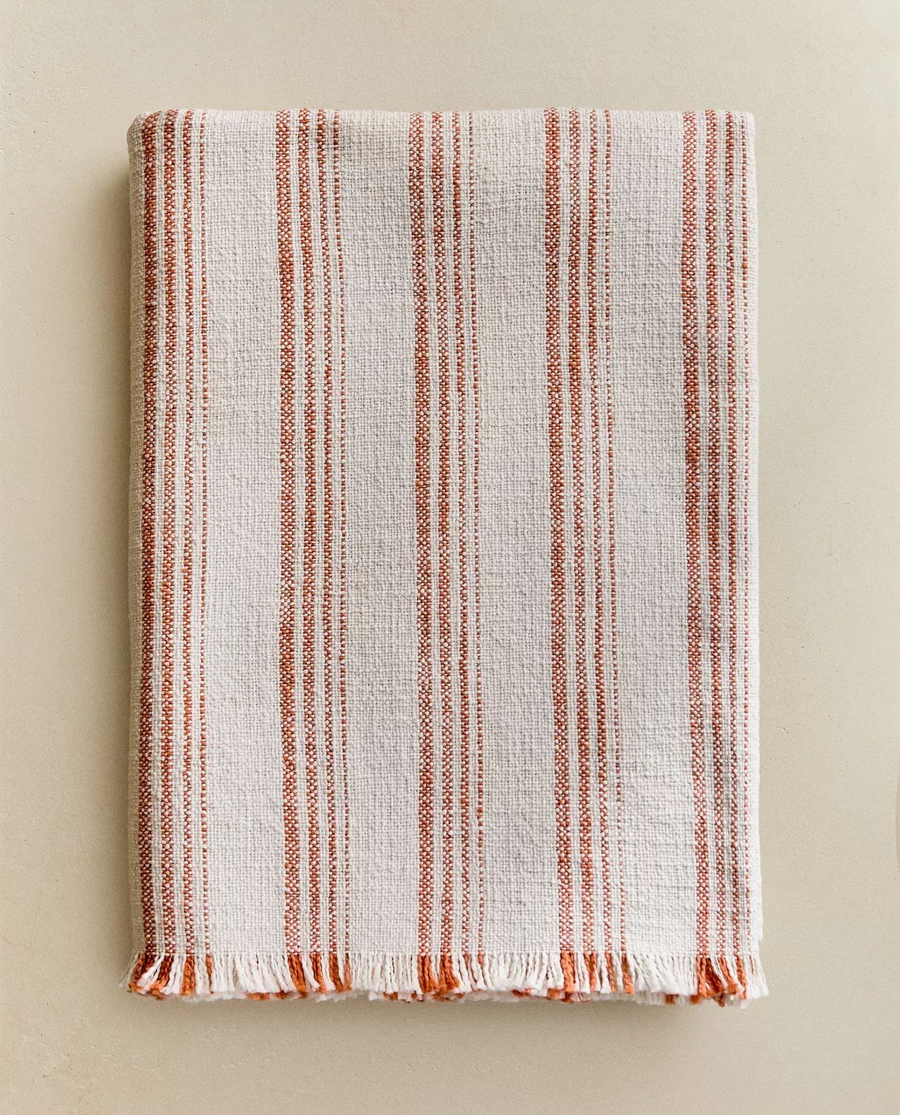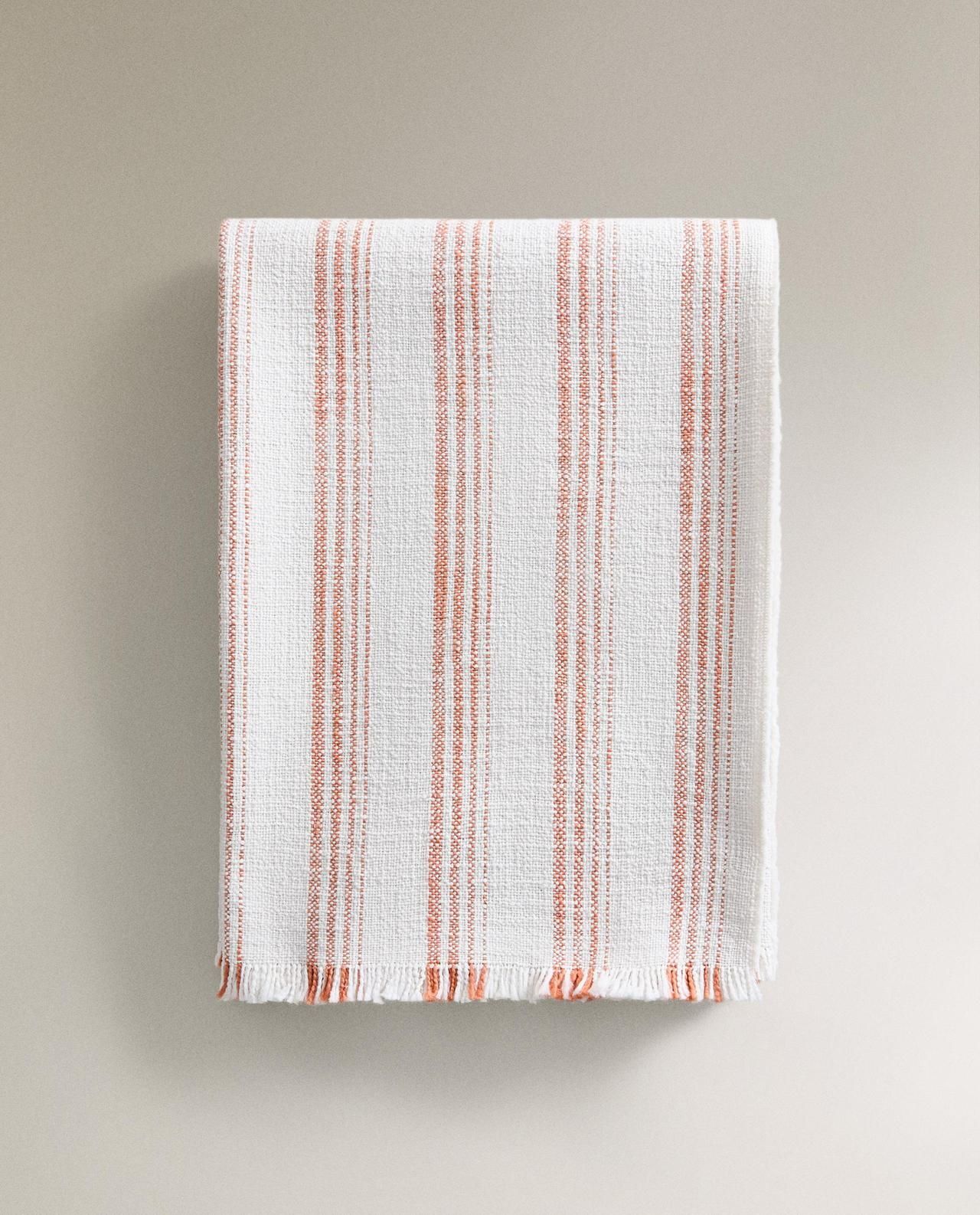 Zara Home - Хлопковое полосатое одеяло, экрю, 140x190 см