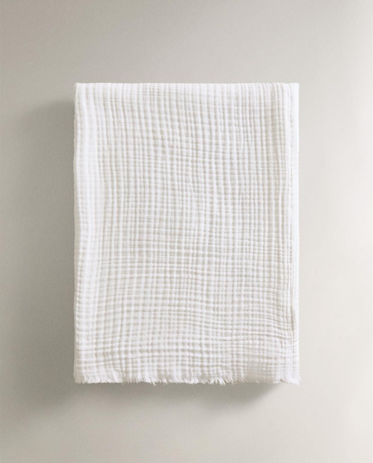 Zara Home - Хлопковое шифоновое одеяло, белый, 140x190 см