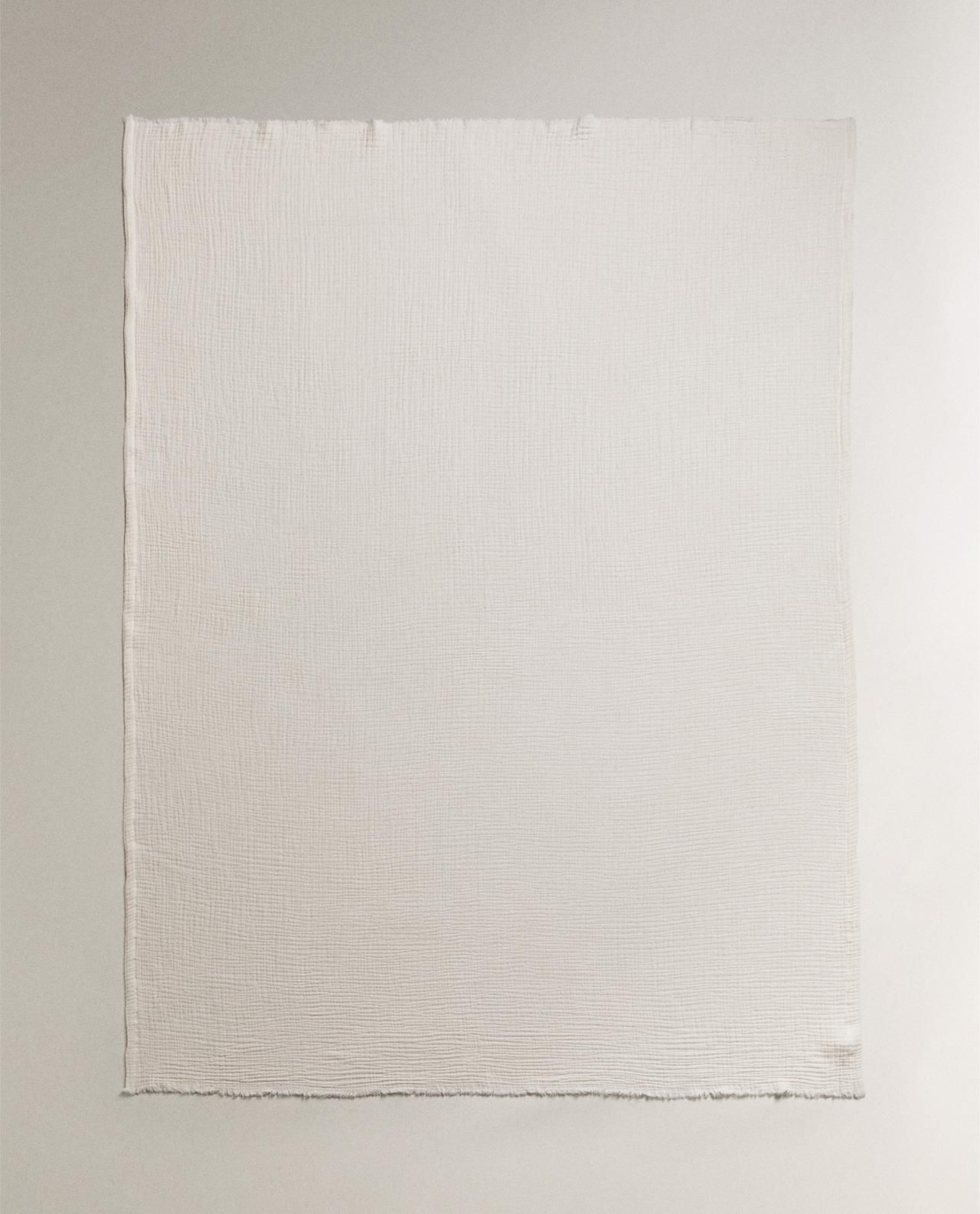 Zara Home - Хлопковое шифоновое одеяло, экрю, 140x190 см