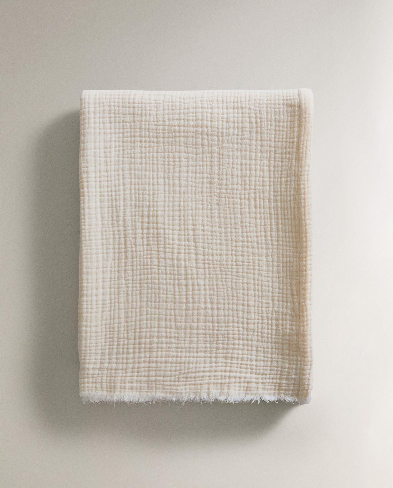 Zara Home - Хлопковое шифоновое одеяло, экрю, 220x240 см
