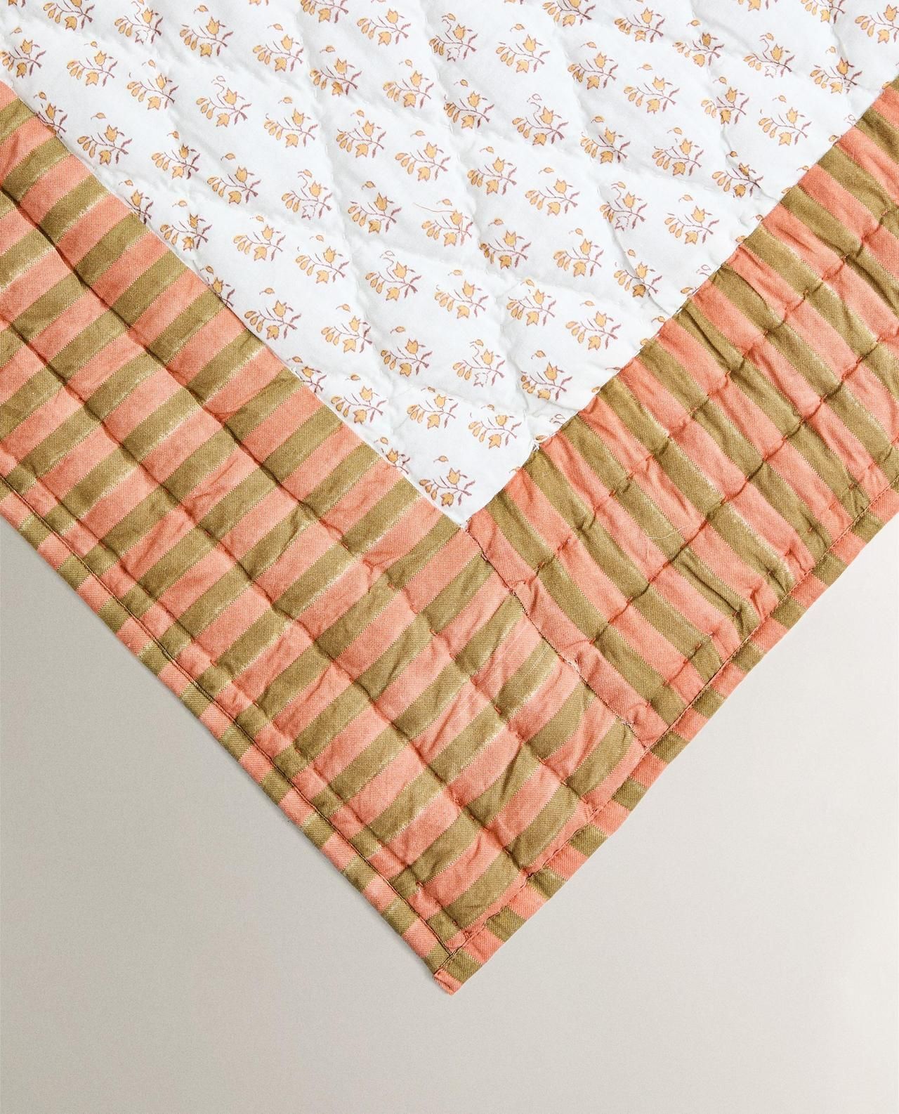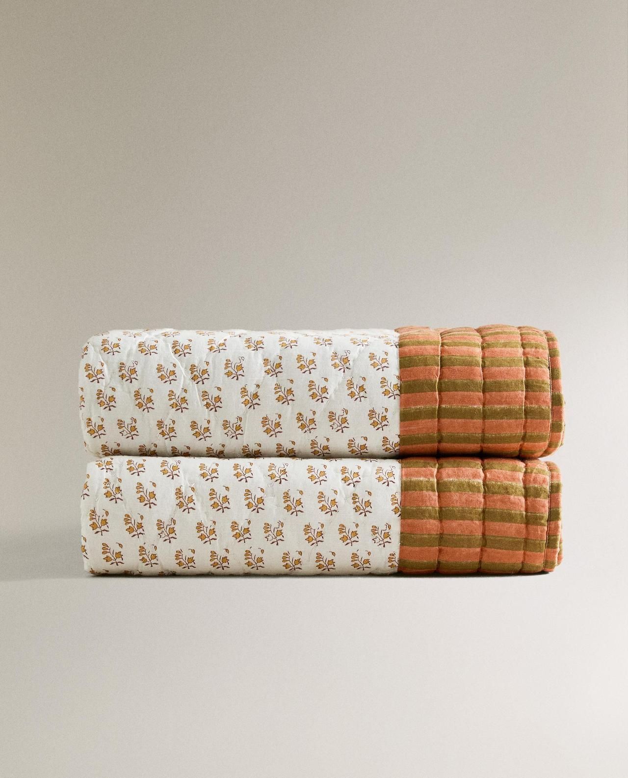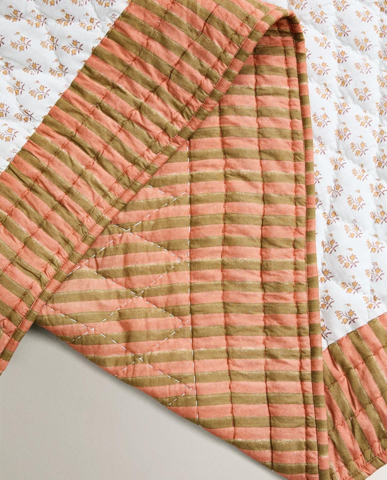 Хлопковое одеяло с принтом в виде панелей. Двухсторонний, с полосатым рисунком.