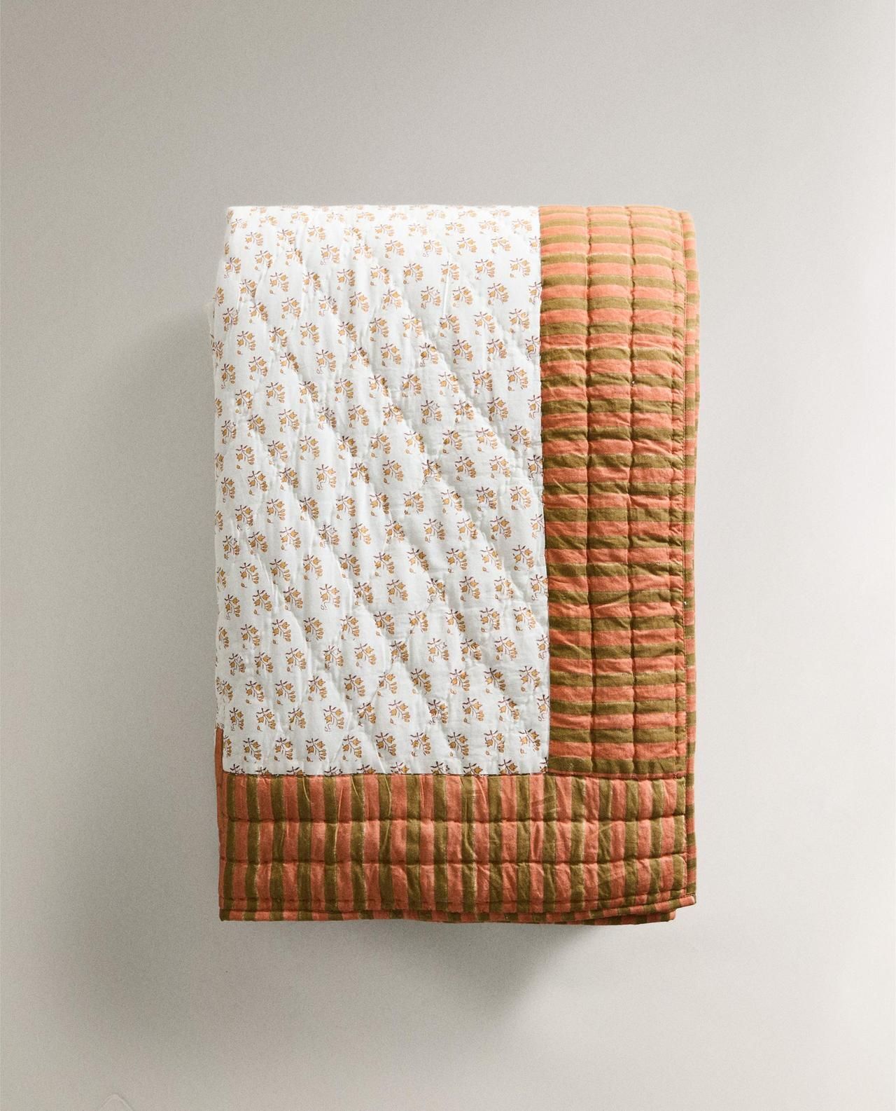 Zara Home - Хлопковый плед с принтом в виде панелей, оранжевый, 230x250 см