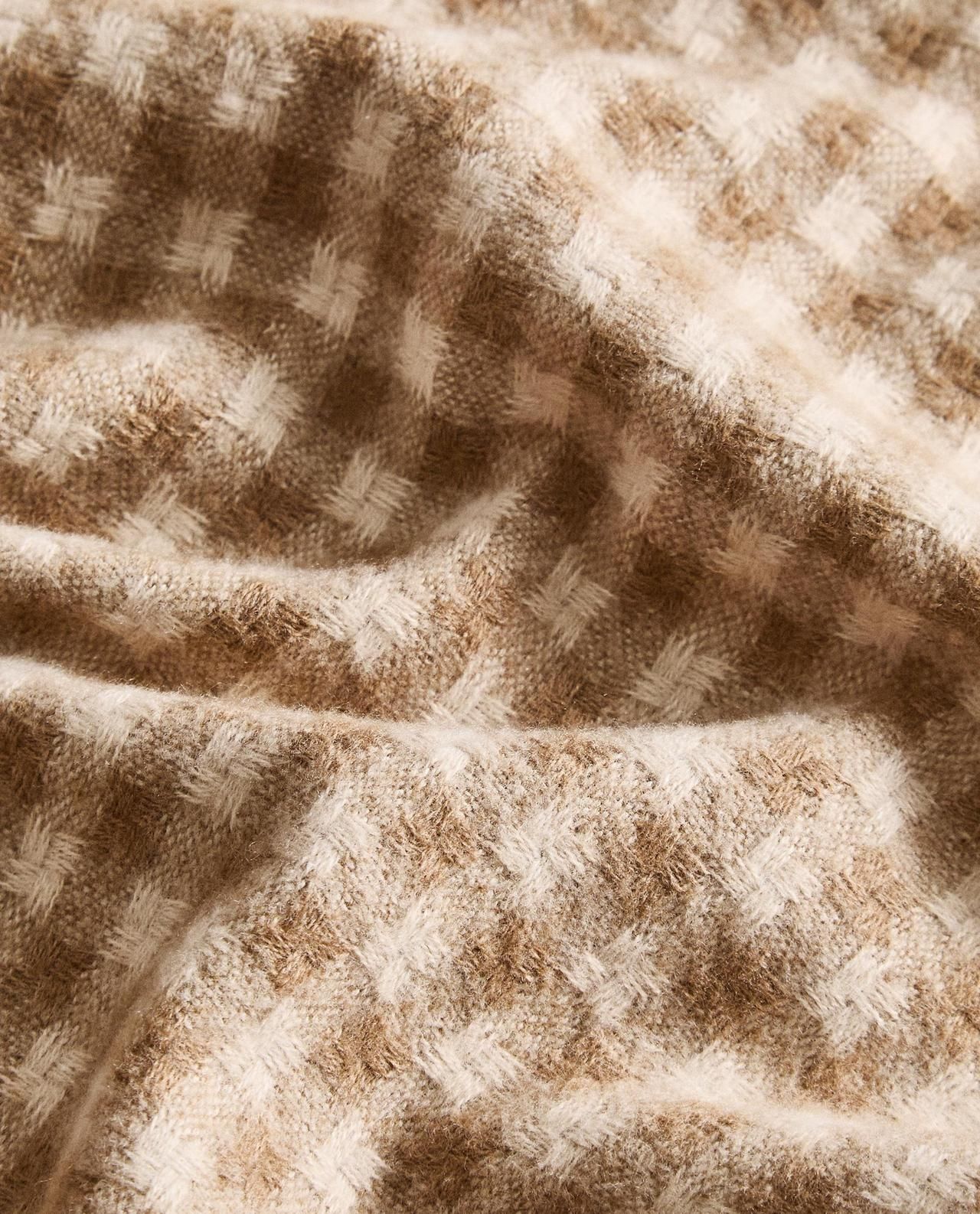 Одеяло с мягкой текстурой, в клетку, с бахромой на концах.