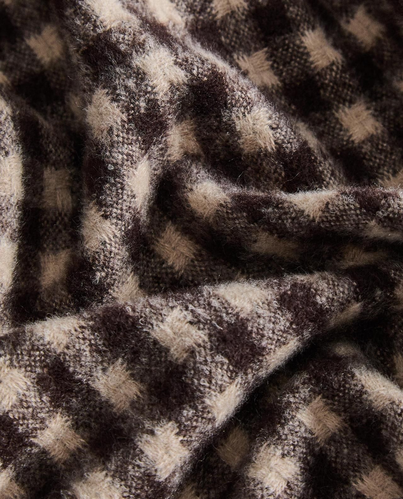 Одеяло с мягкой текстурой, в клетку, с бахромой на концах.