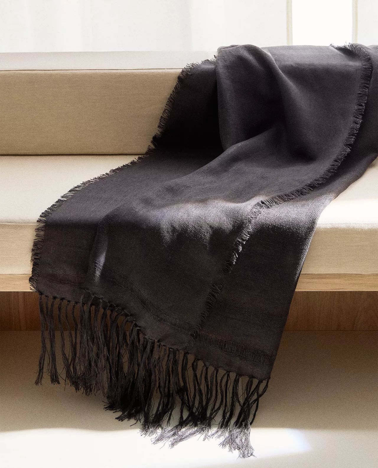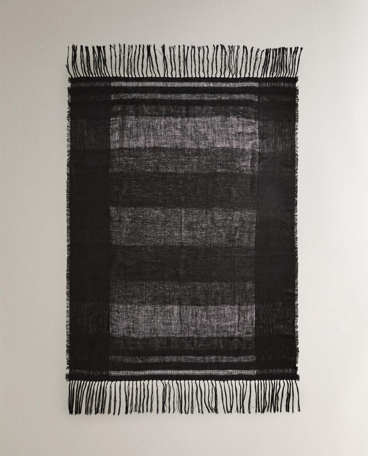 Одеяло из льна, с полосками и отделкой бахромой. Это одеяло, которое обеспечивает тепло, мягкость и легкость.