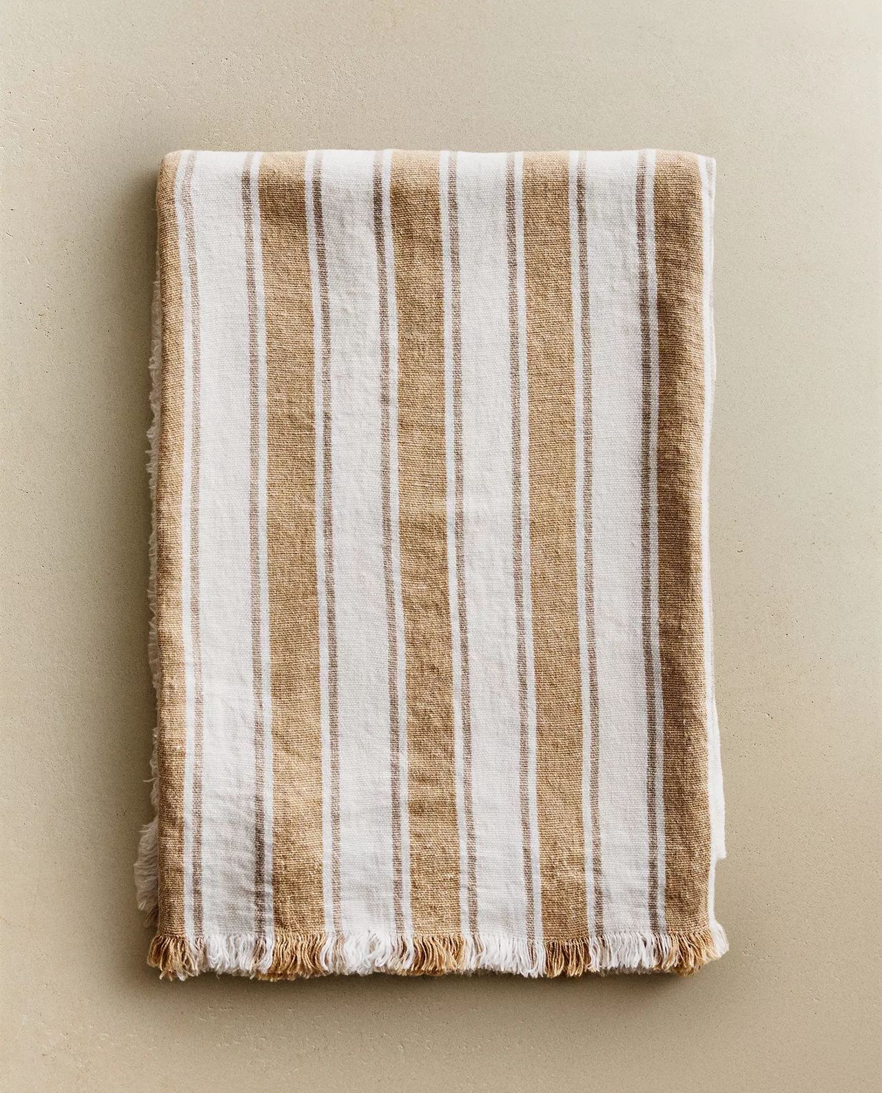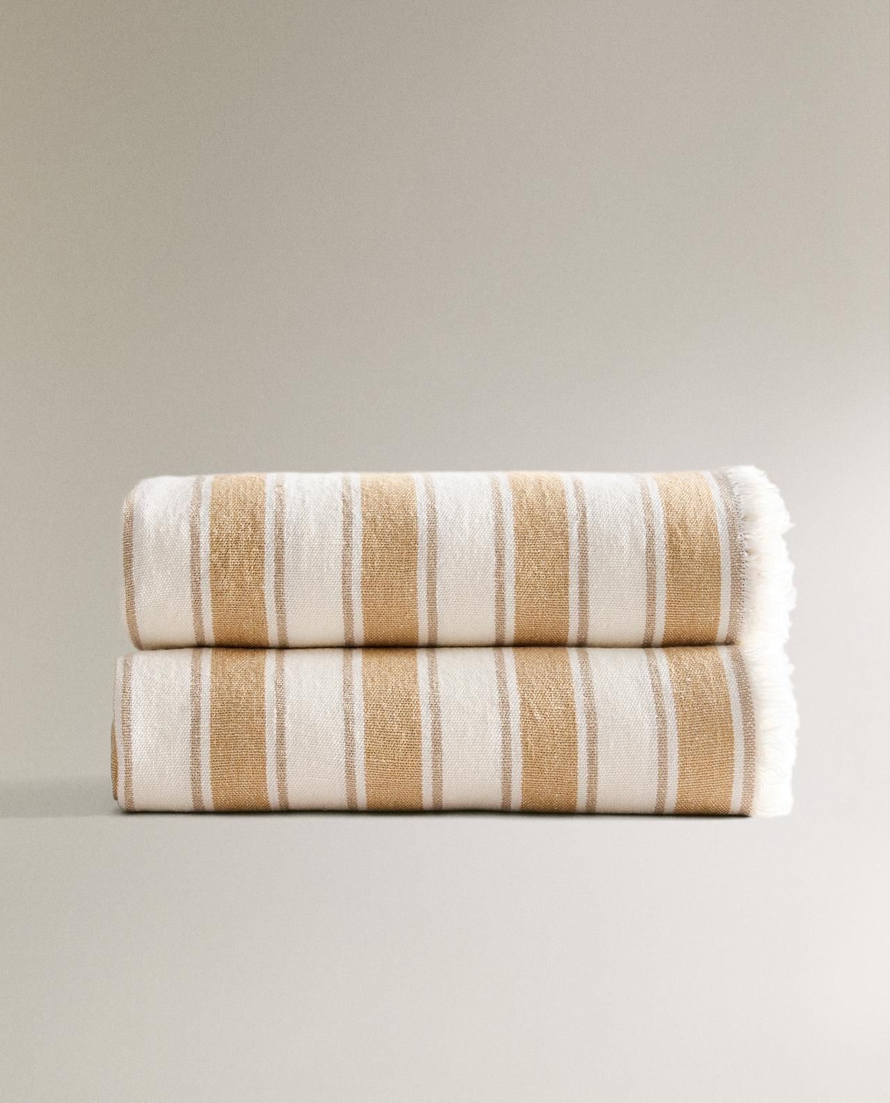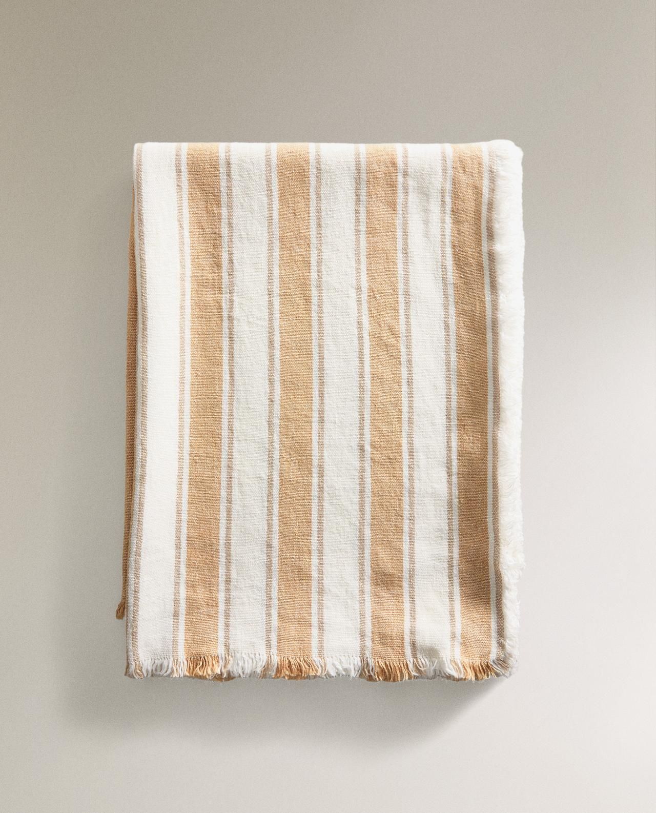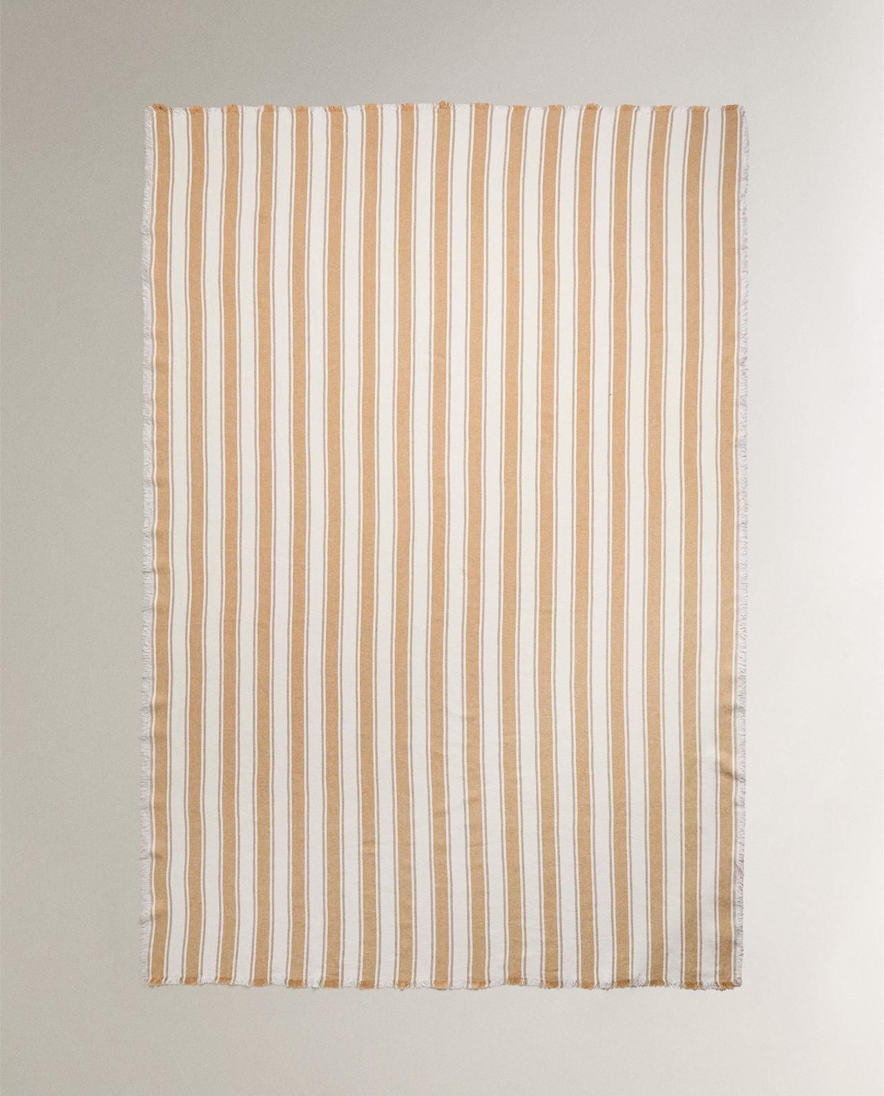 Zara Home - Льняное одеяло с полосками на подоле, горчичный, 140x190 см