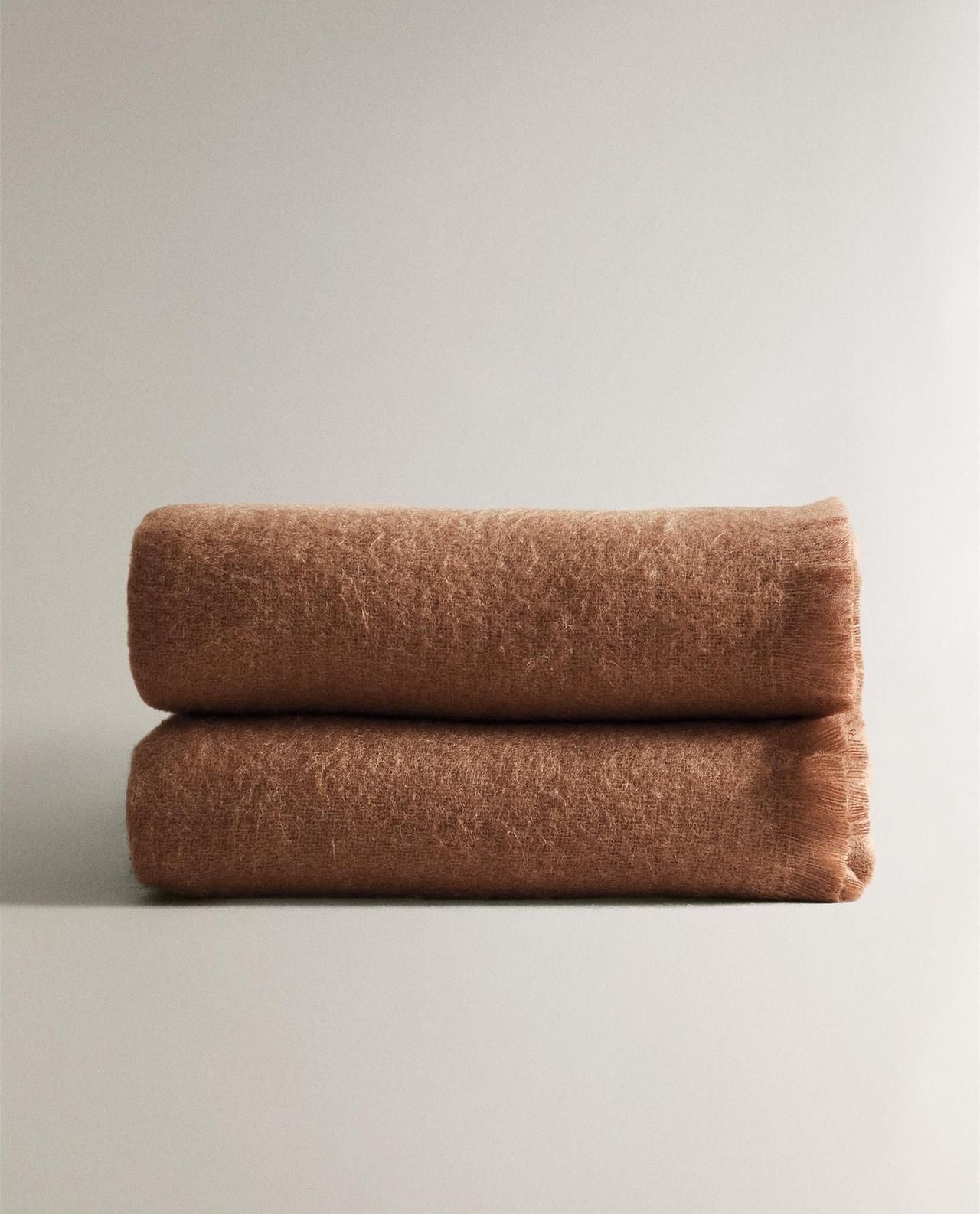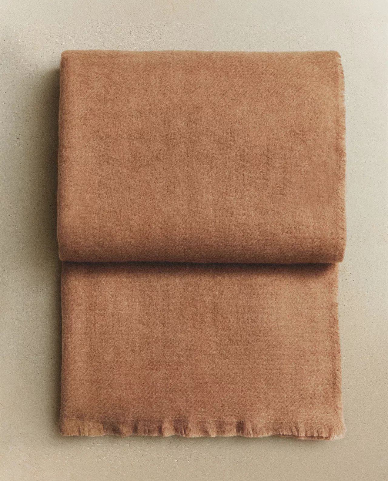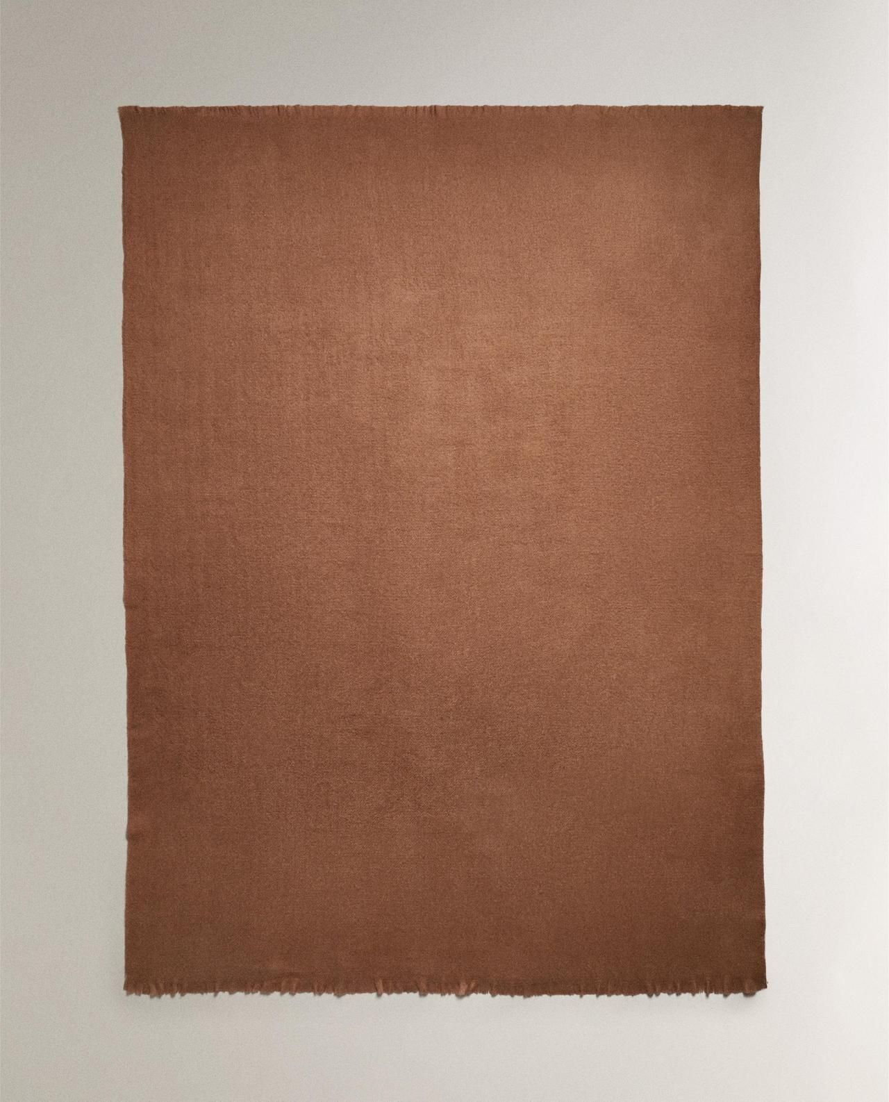 Zara Home - Мягкий плед с бахромой, терракота, 140x190 см