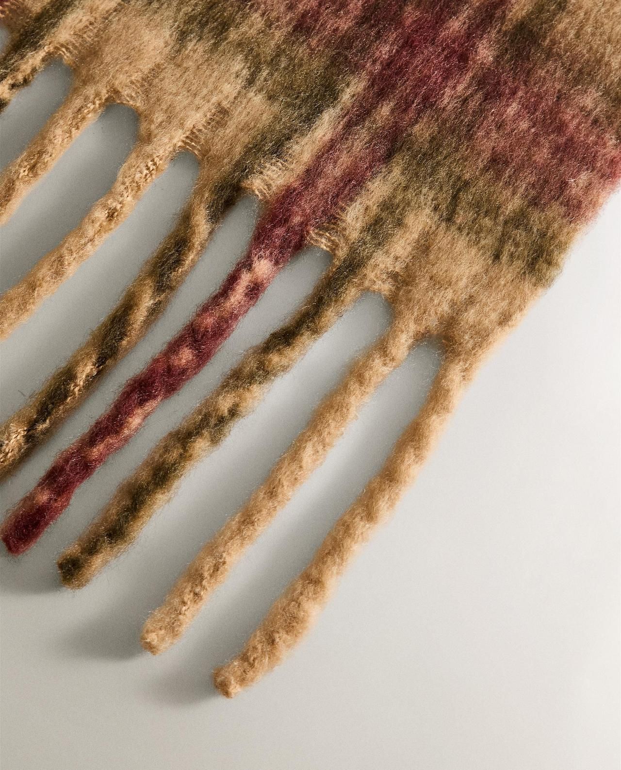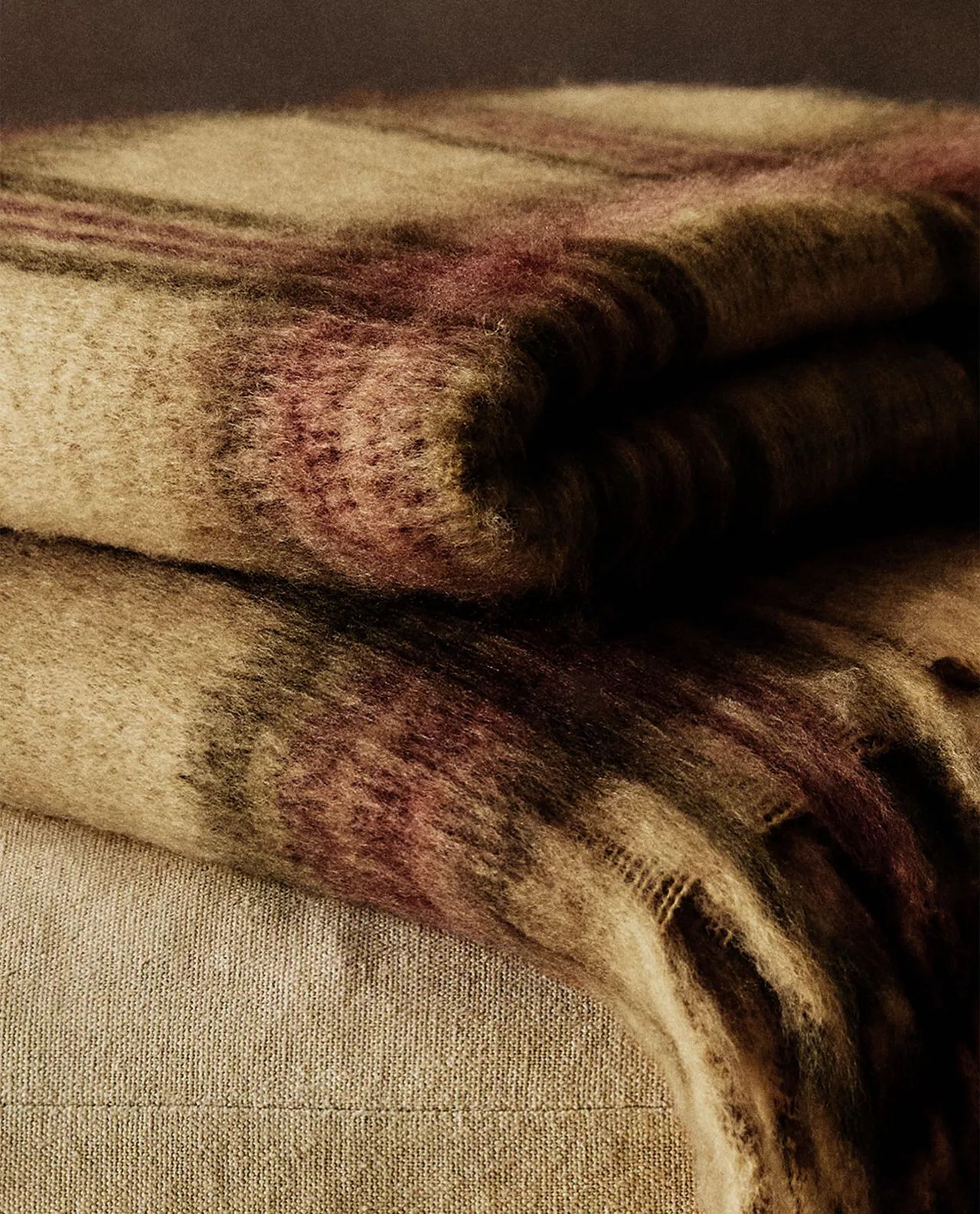 Легкое одеяло с мягкой текстурой, отделанное бахромой на концах. Доступен в различных цветах с рисунком в клетку.
