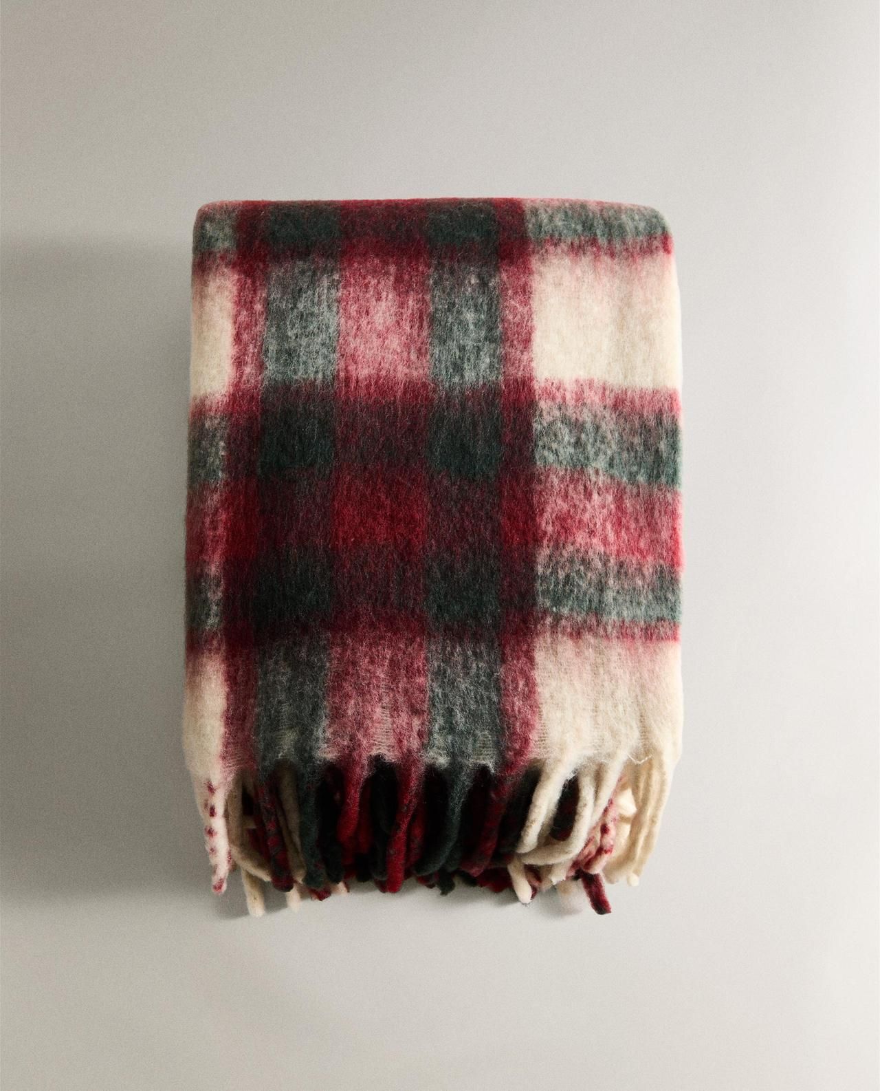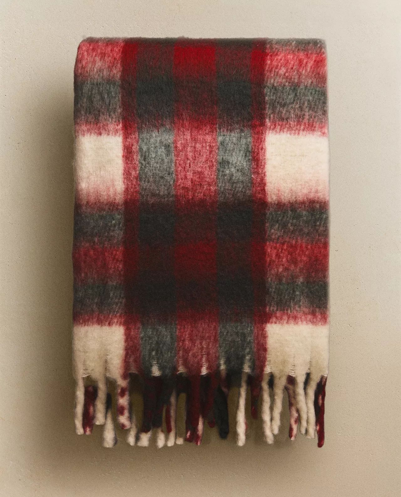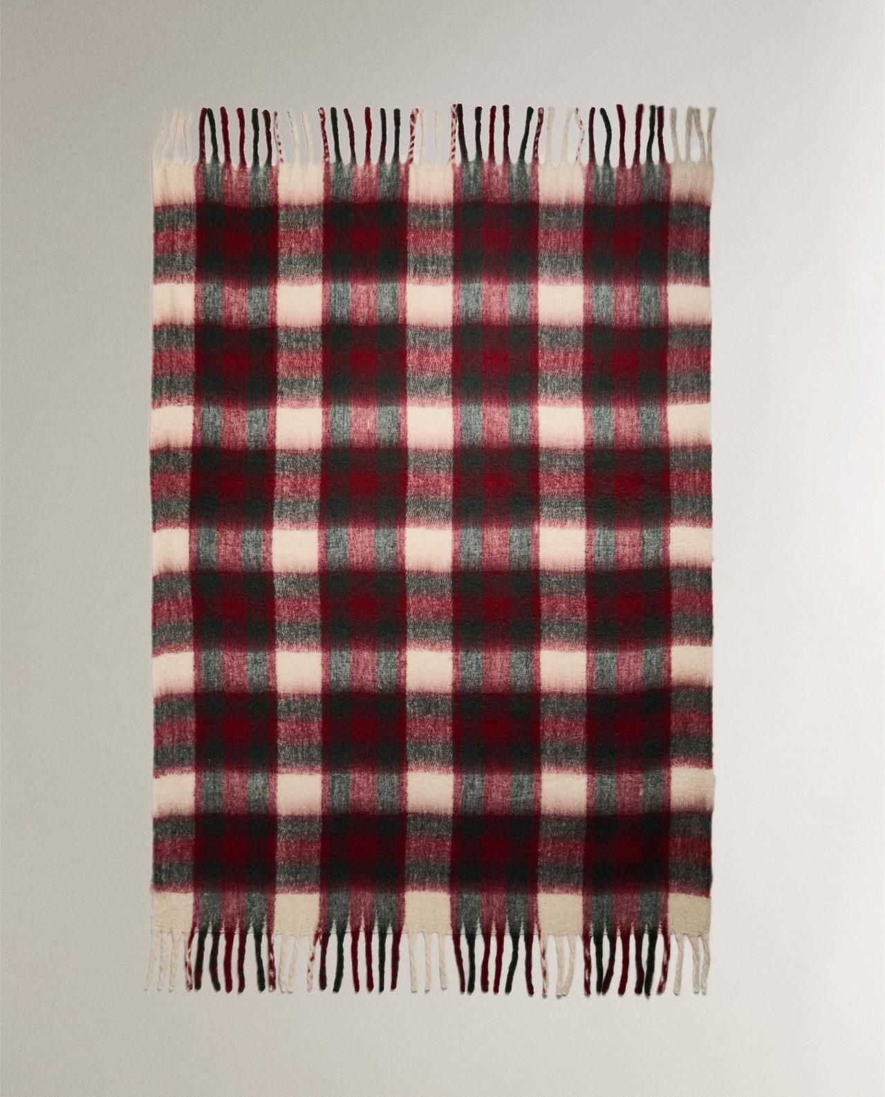 Легкое одеяло с мягкой текстурой, отделанное бахромой на концах. Доступен в различных цветах с рисунком в клетку.