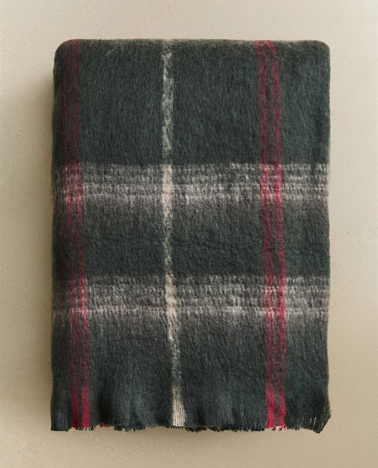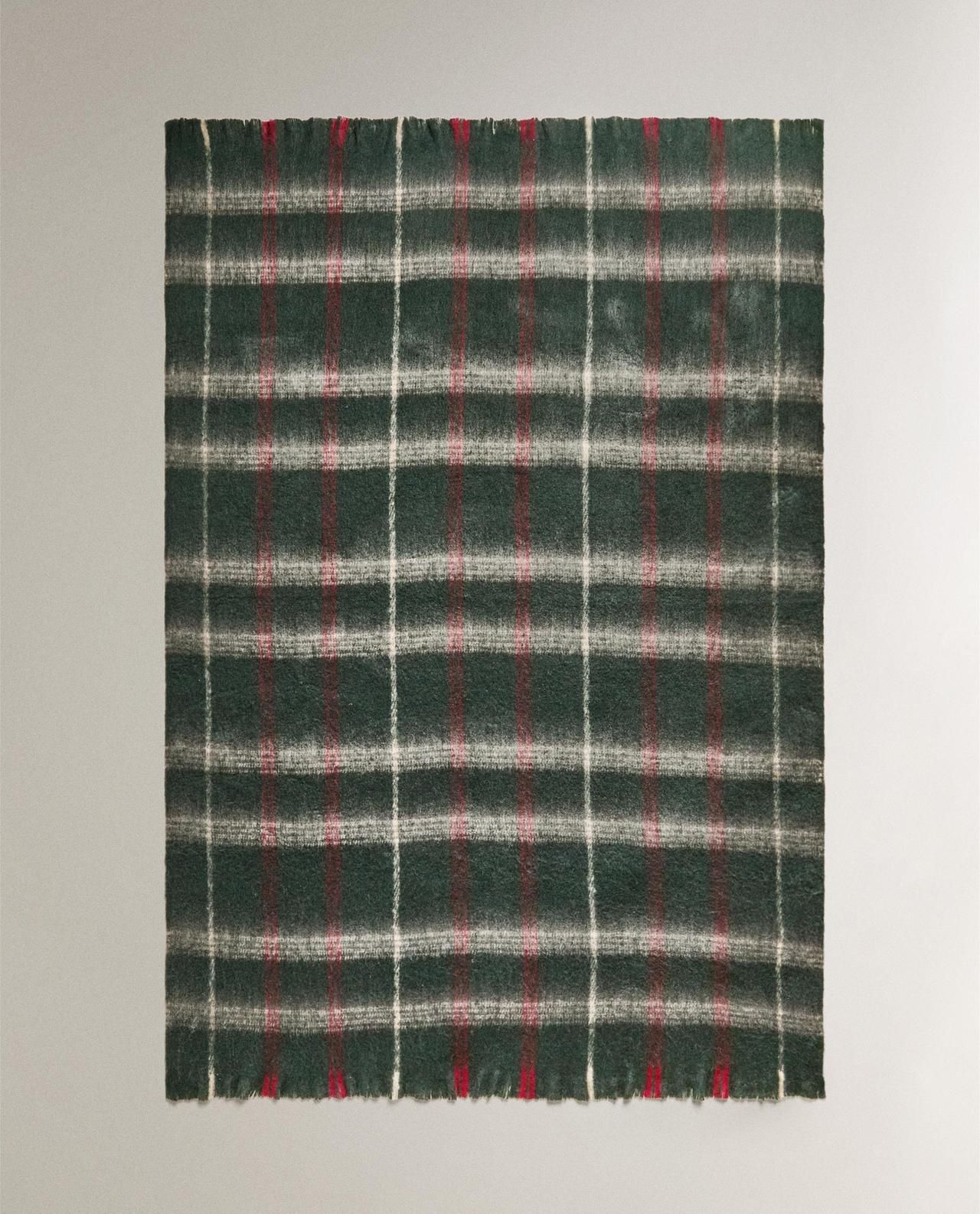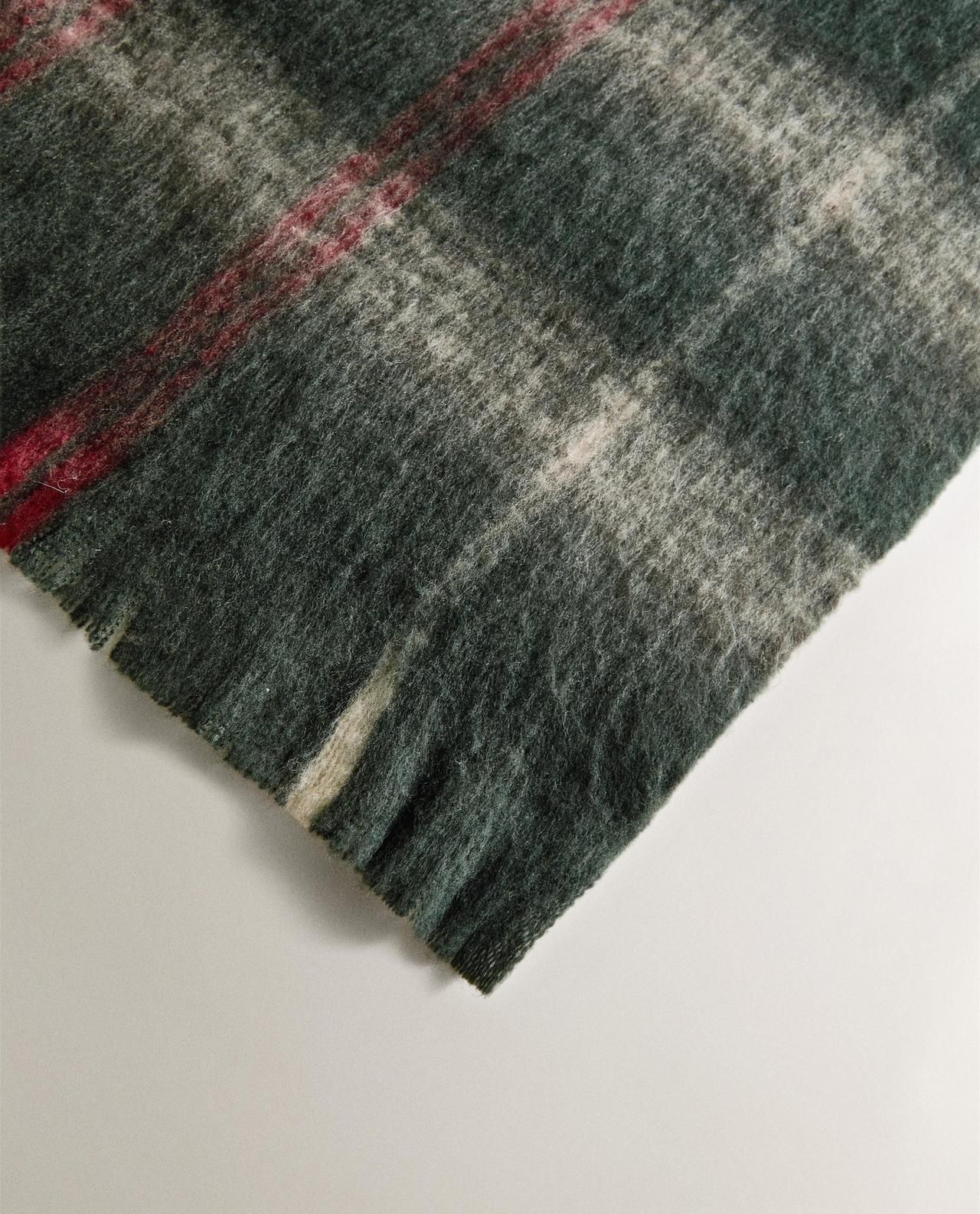 Легкое одеяло с мягкой текстурой, отделанное потертой бахромой на концах. Доступен в различных цветах с рисунком в клетку.