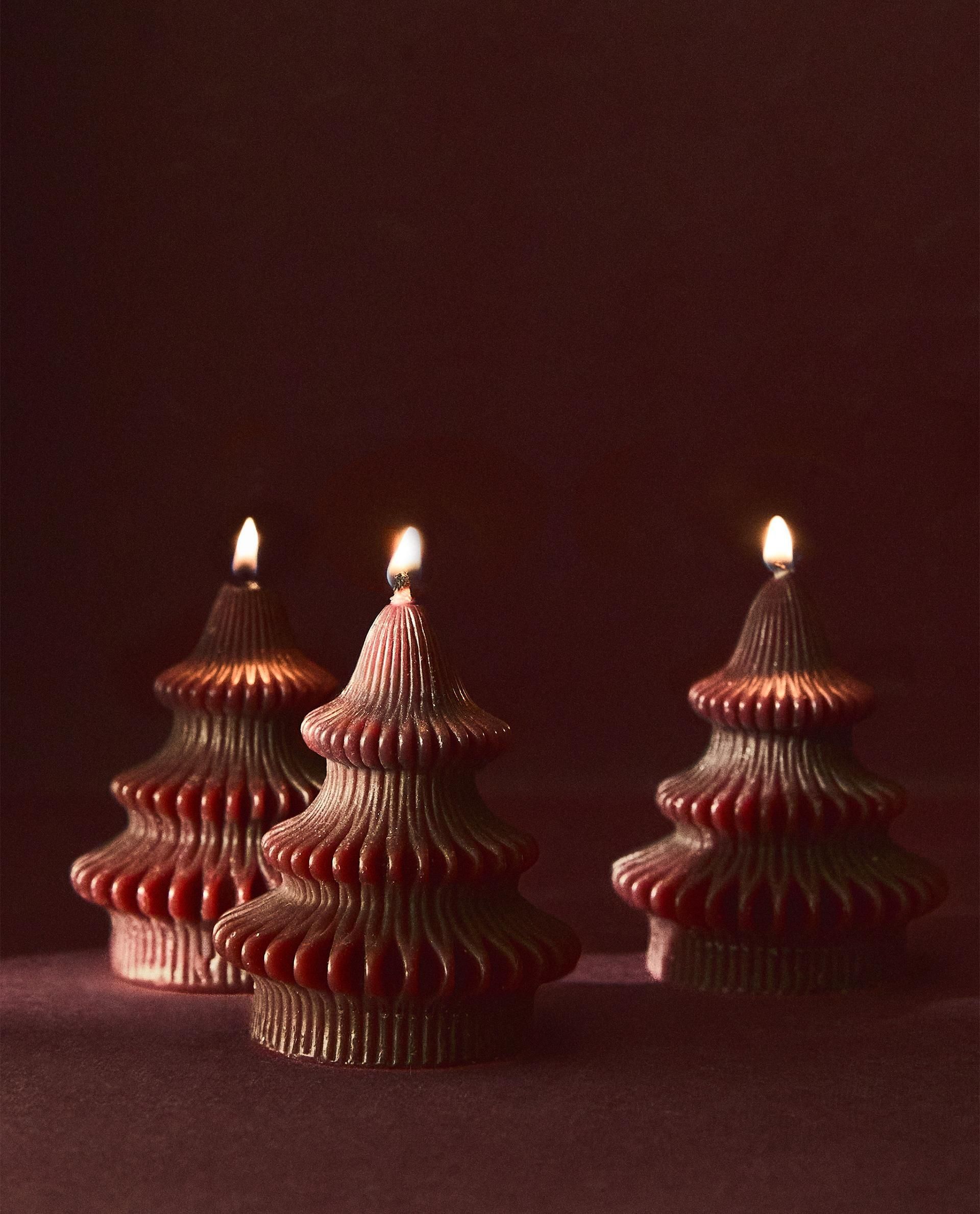 Ароматические свечи в форме рождественских елок, сделанные из растительных восков.