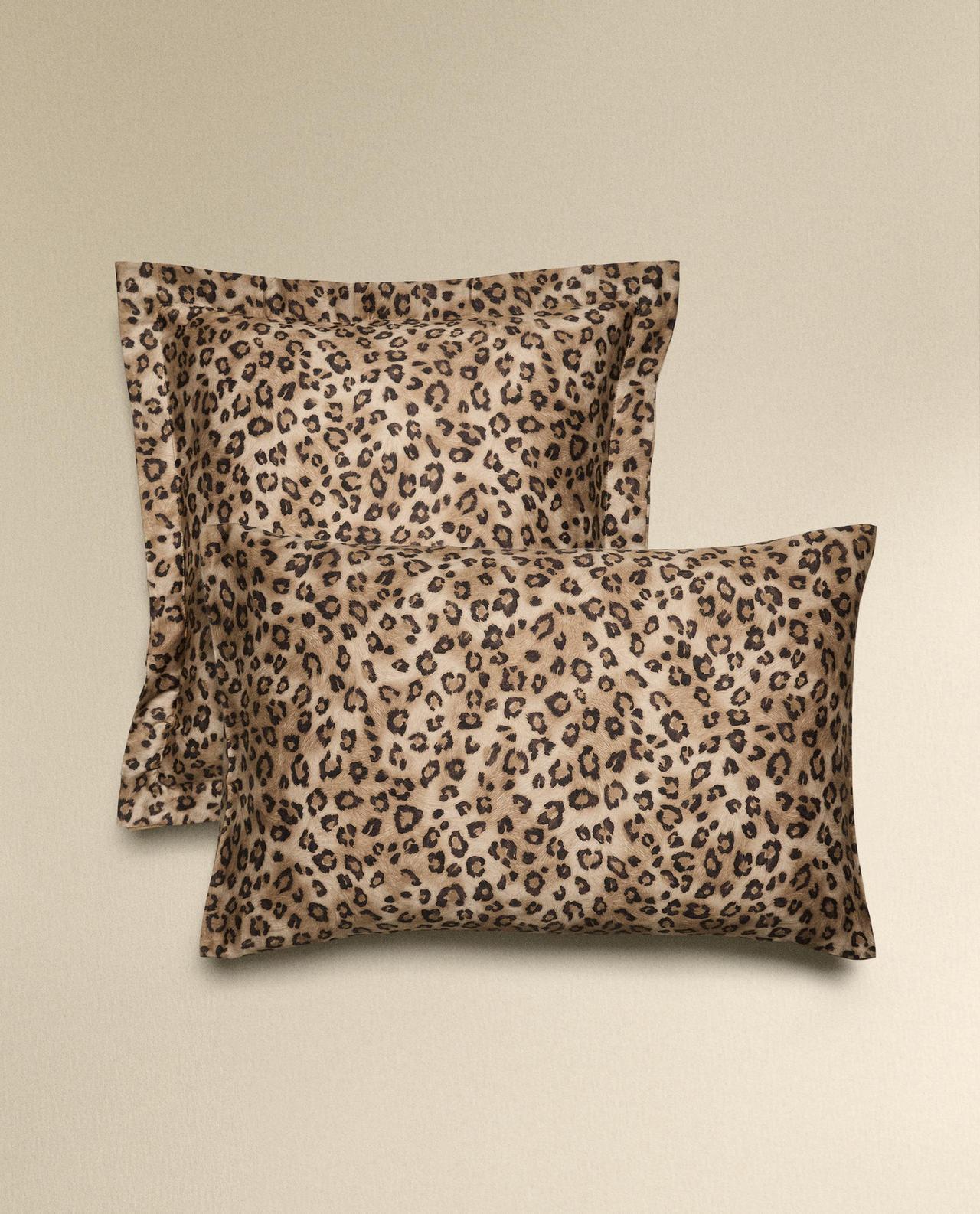 Наволочка из сатинового хлопка с переплетением 300 нитей, с животным принтом.