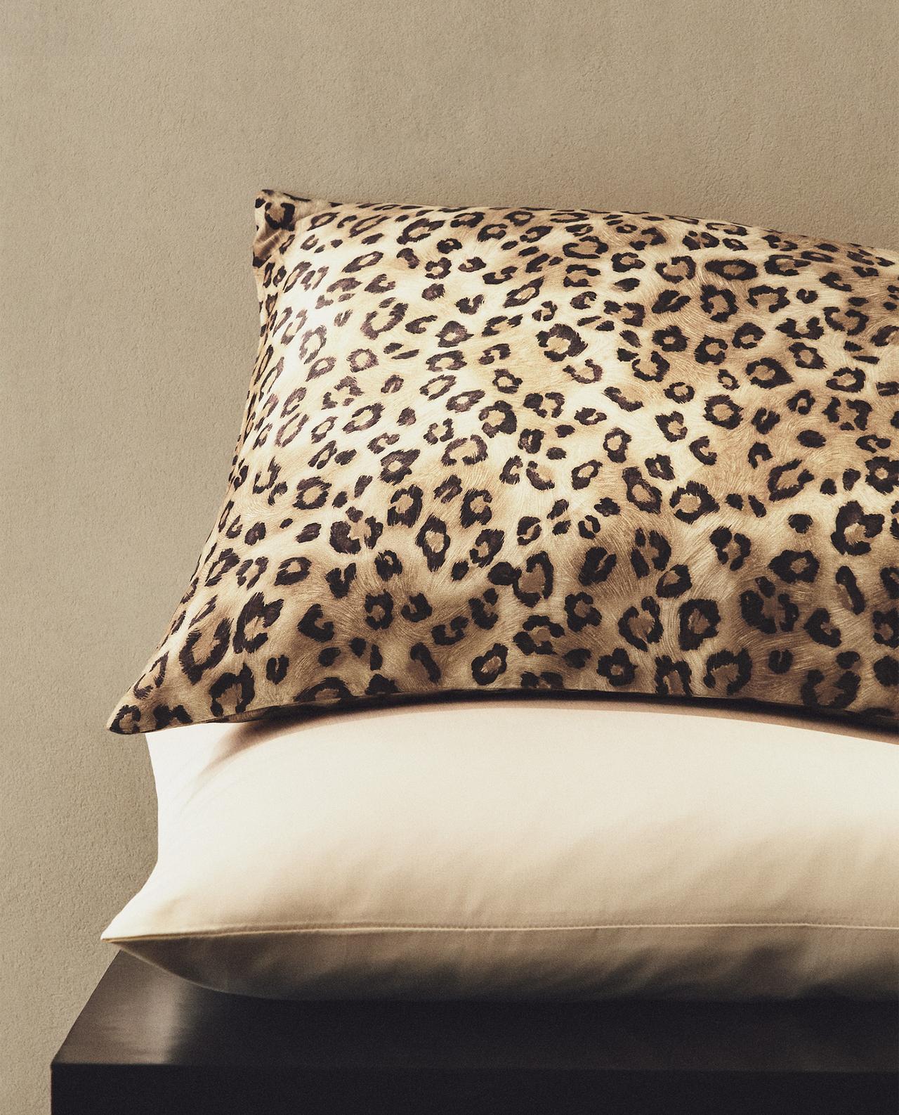 Наволочка из сатинового хлопка с переплетением 300 нитей, с животным принтом.