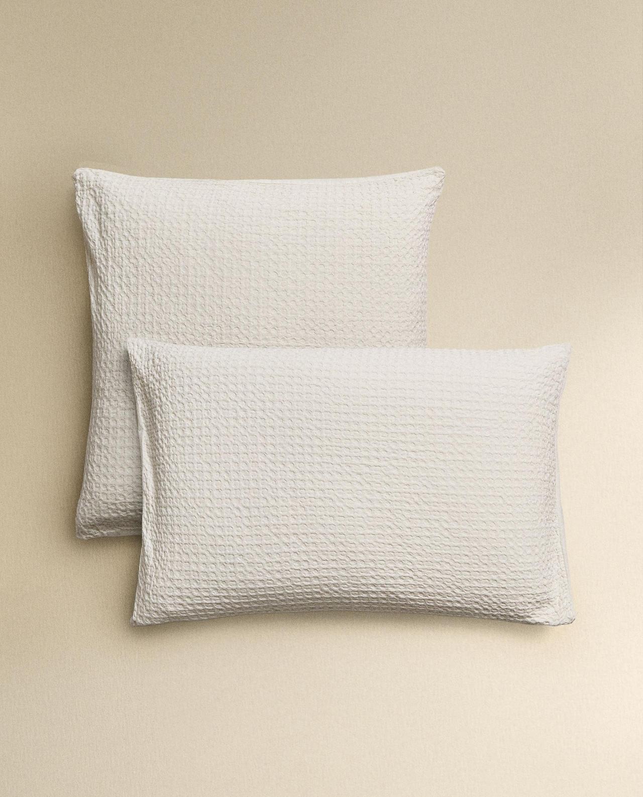 Наволочка из ситцевого хлопка 200 нитей с вафельной текстурой.