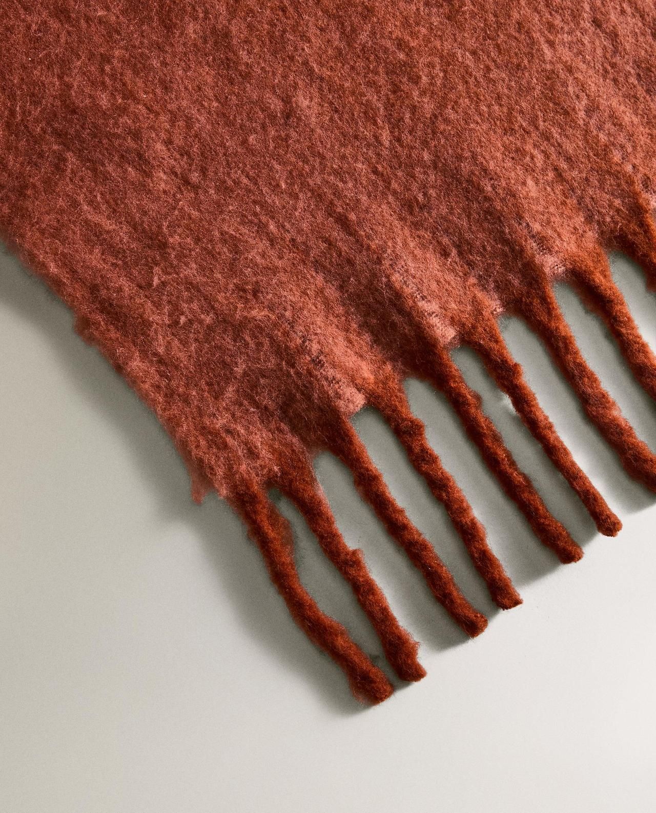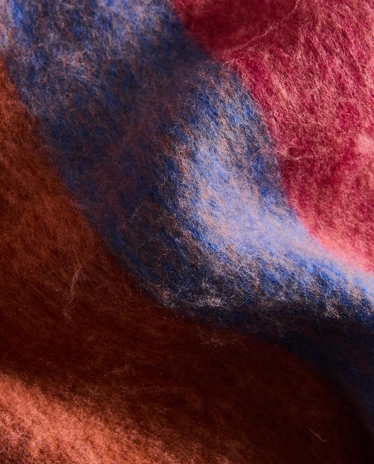 Одеяло в нерегулярные цветные полосы с бахромой по бокам.