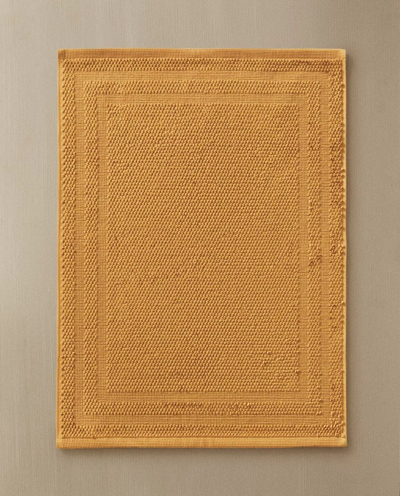 Двойной бордюрный хлопковый коврик для ванной комнаты с очень плотной, толстой и абсорбирующей текстурой. Нескользящая подошва гарантирует безопасность и стабильность на влажных поверхностях.