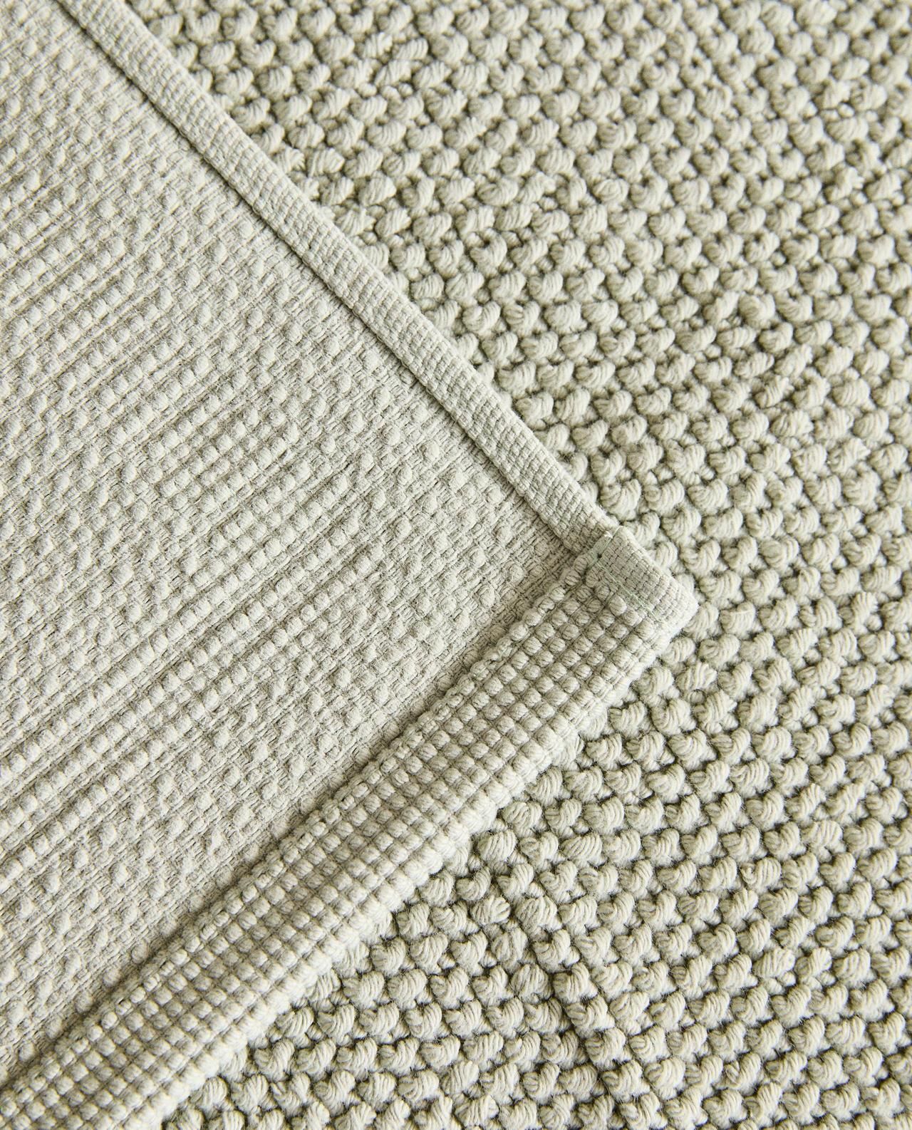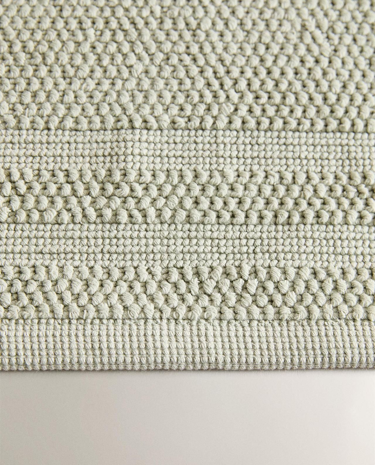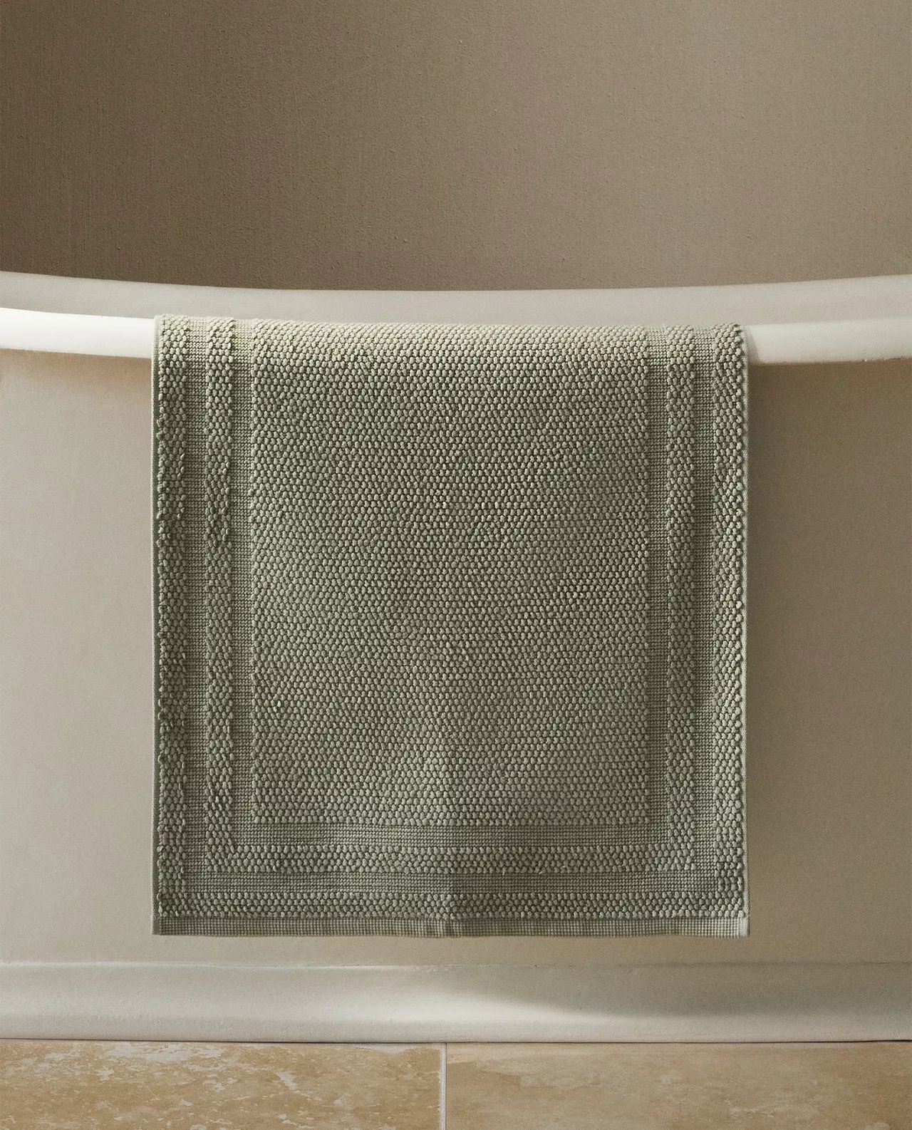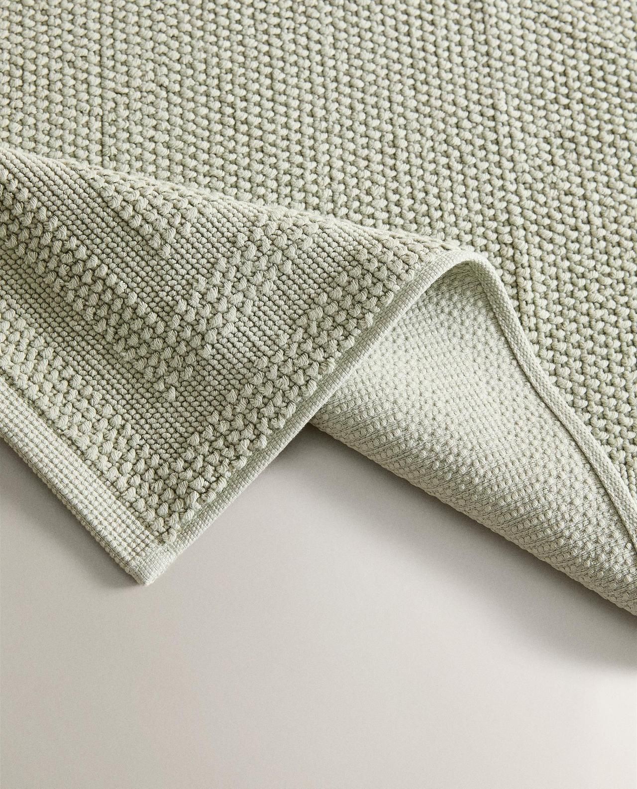 Двойной бордюрный хлопковый коврик для ванной комнаты с очень плотной, толстой и абсорбирующей текстурой. Нескользящая подошва гарантирует безопасность и стабильность на влажных поверхностях.