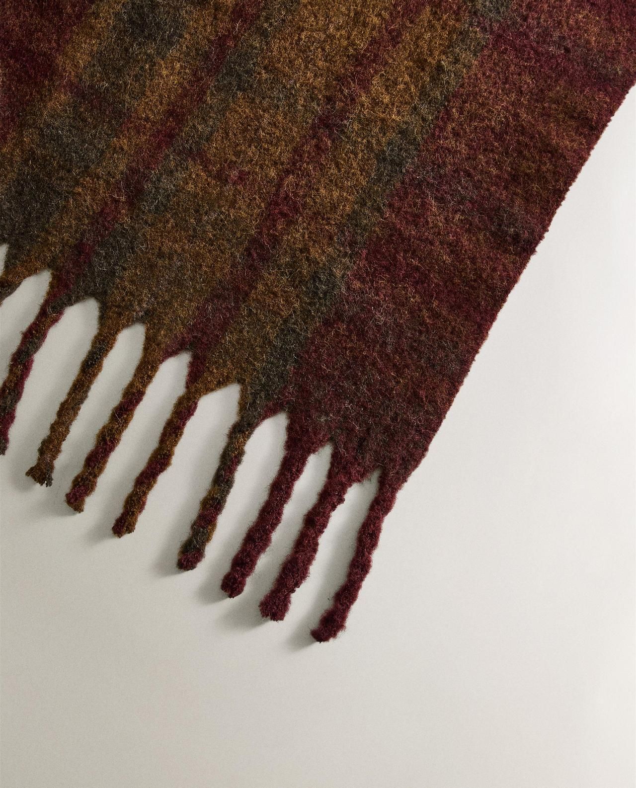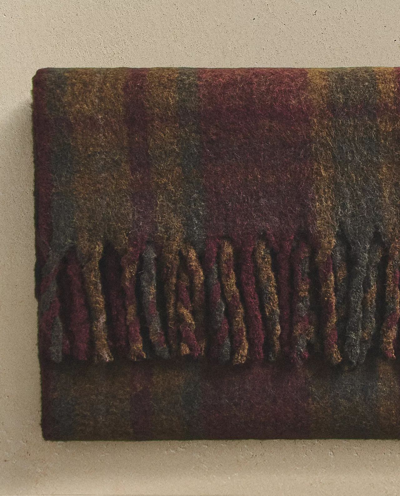 Легкое одеяло из альпаки и шерсти, с мягкой текстурой и с бахромой на концах. Доступен во многих цветах с рисунком в клетку.