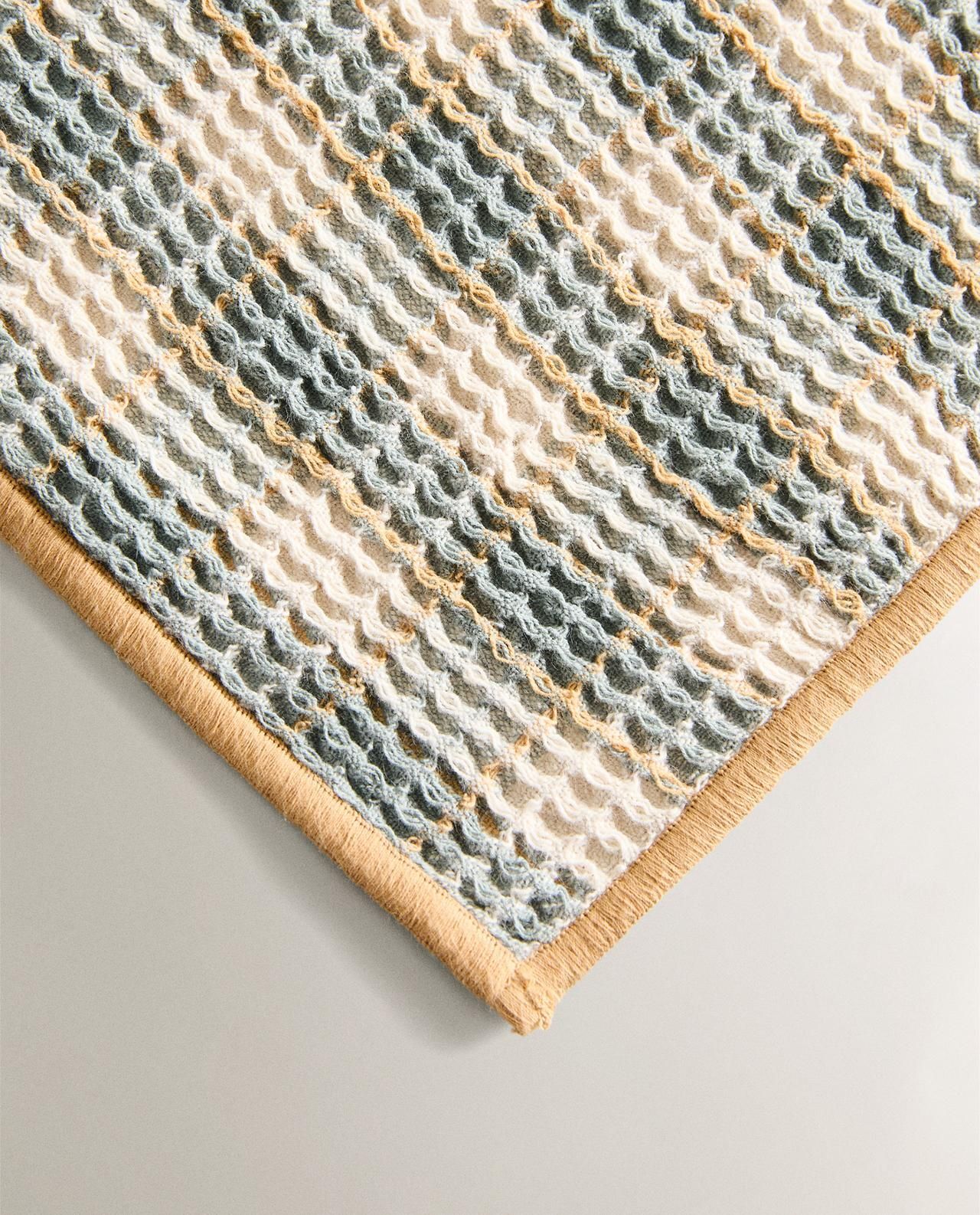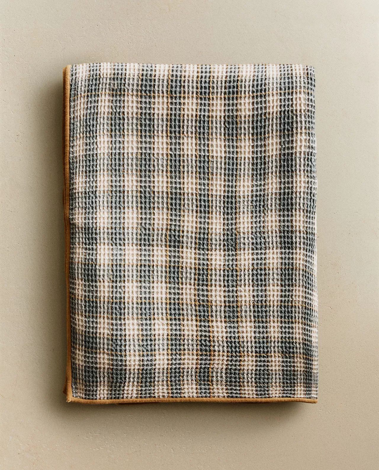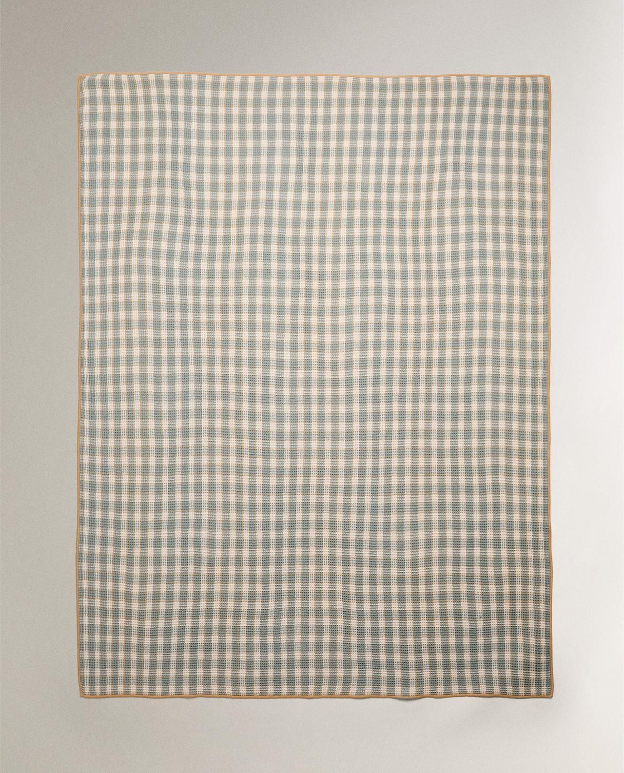 Zara Home - Плед в клетку с вафельной текстурой, синий, 140x190 см