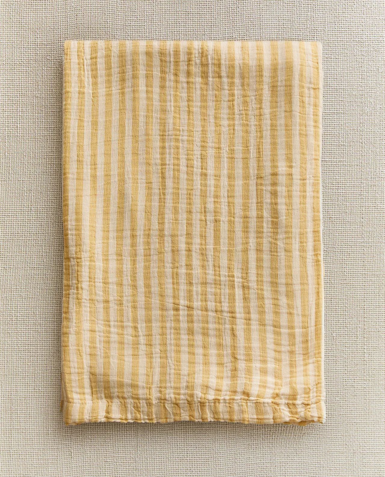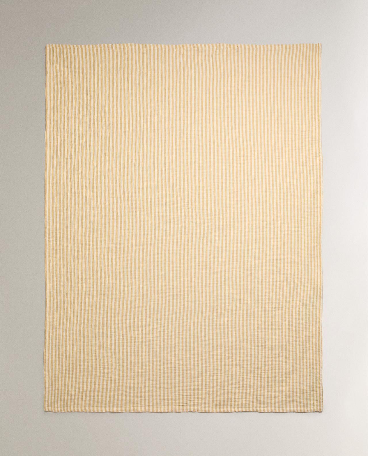 Одеяло из хлопкового шифона в контрастные бело-желтые полосы.