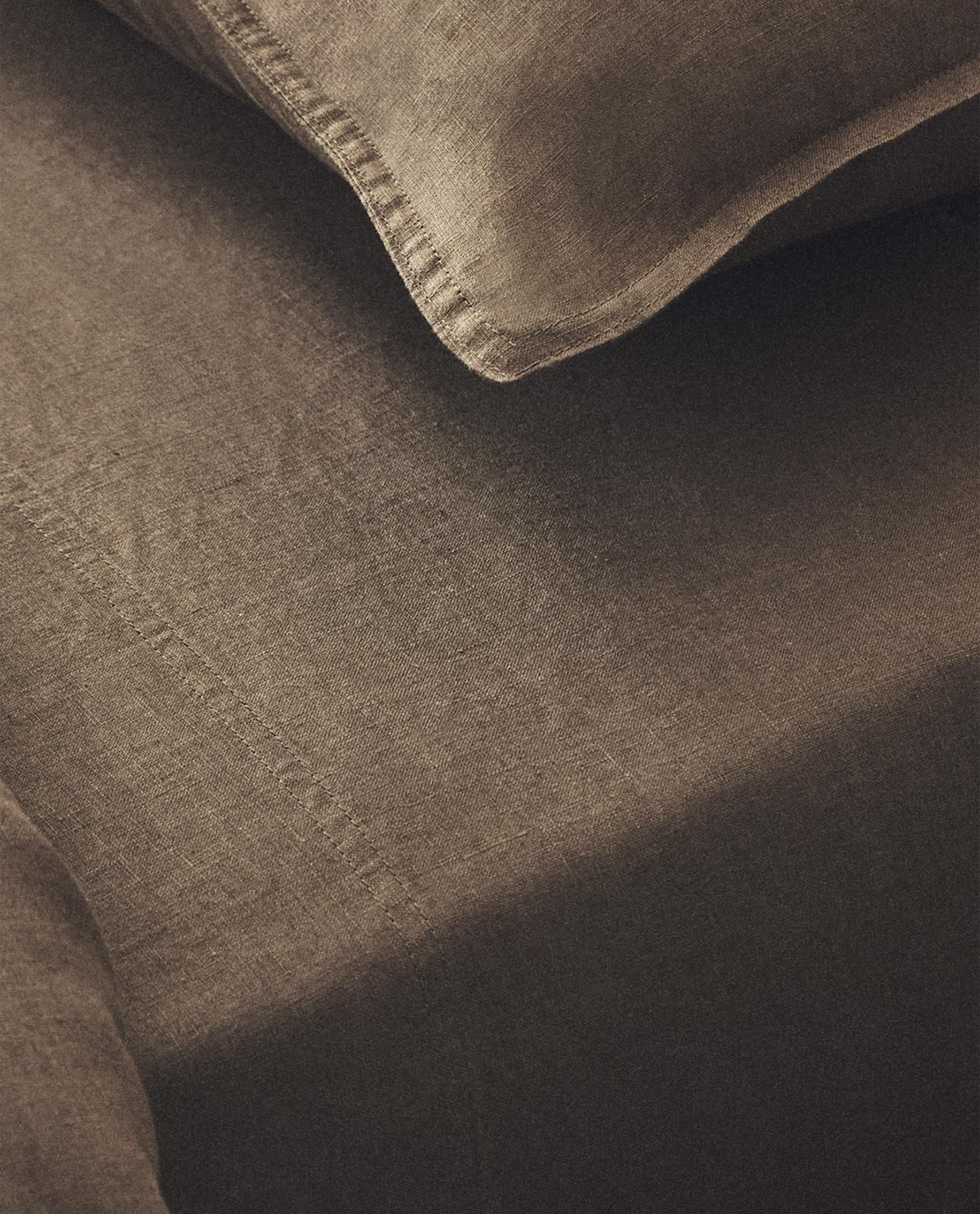 Простыня из постиранного льна плотностью 140 Гхм2. Техника стирки делает ткань мягче и лучше укладывается.