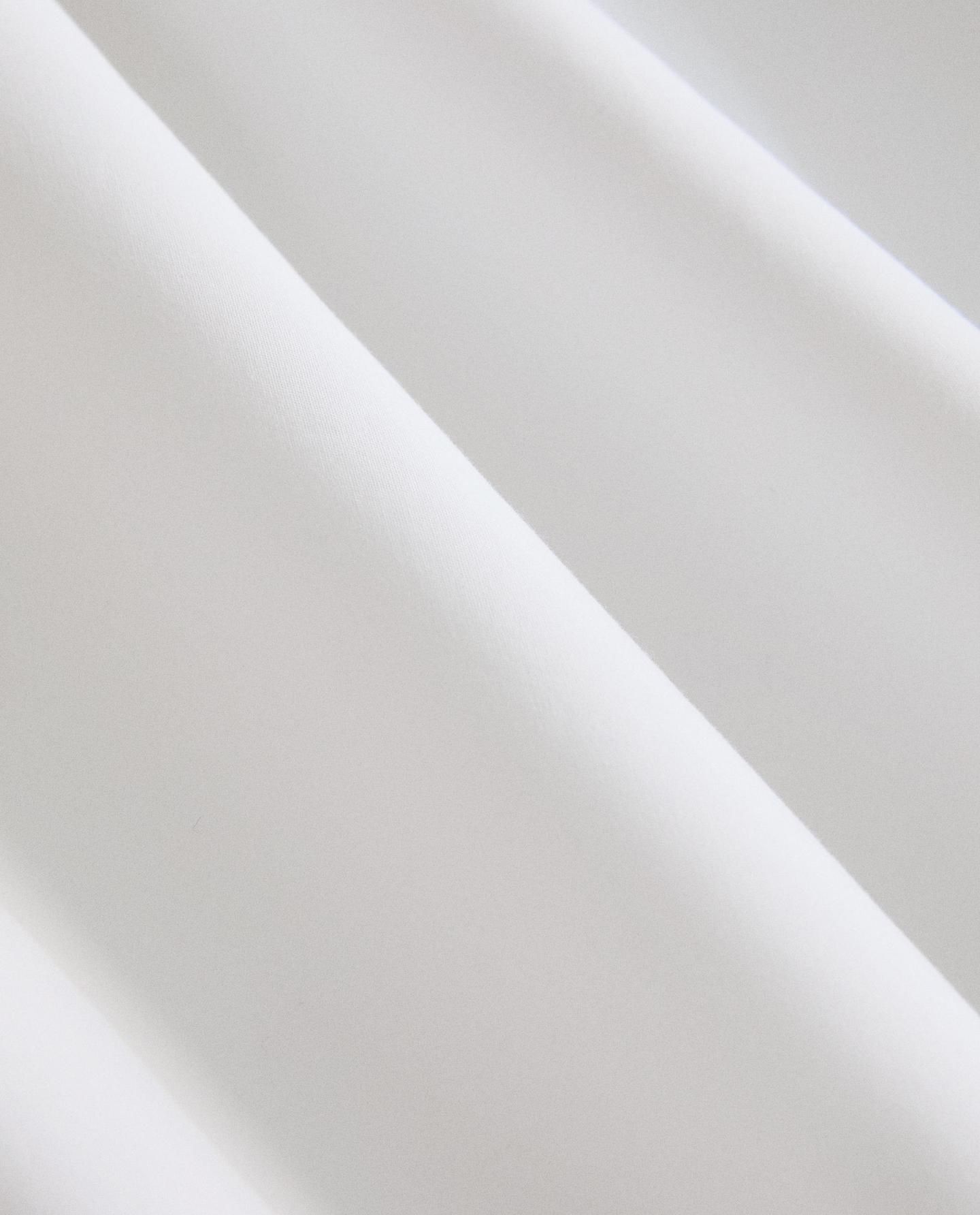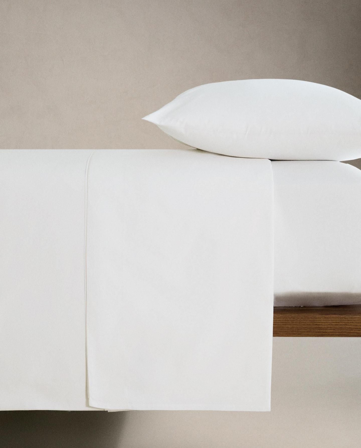 Простыня из ситцевого хлопка плотностью 300 нитей, однотонного цвета и с контрастным оверлоком.