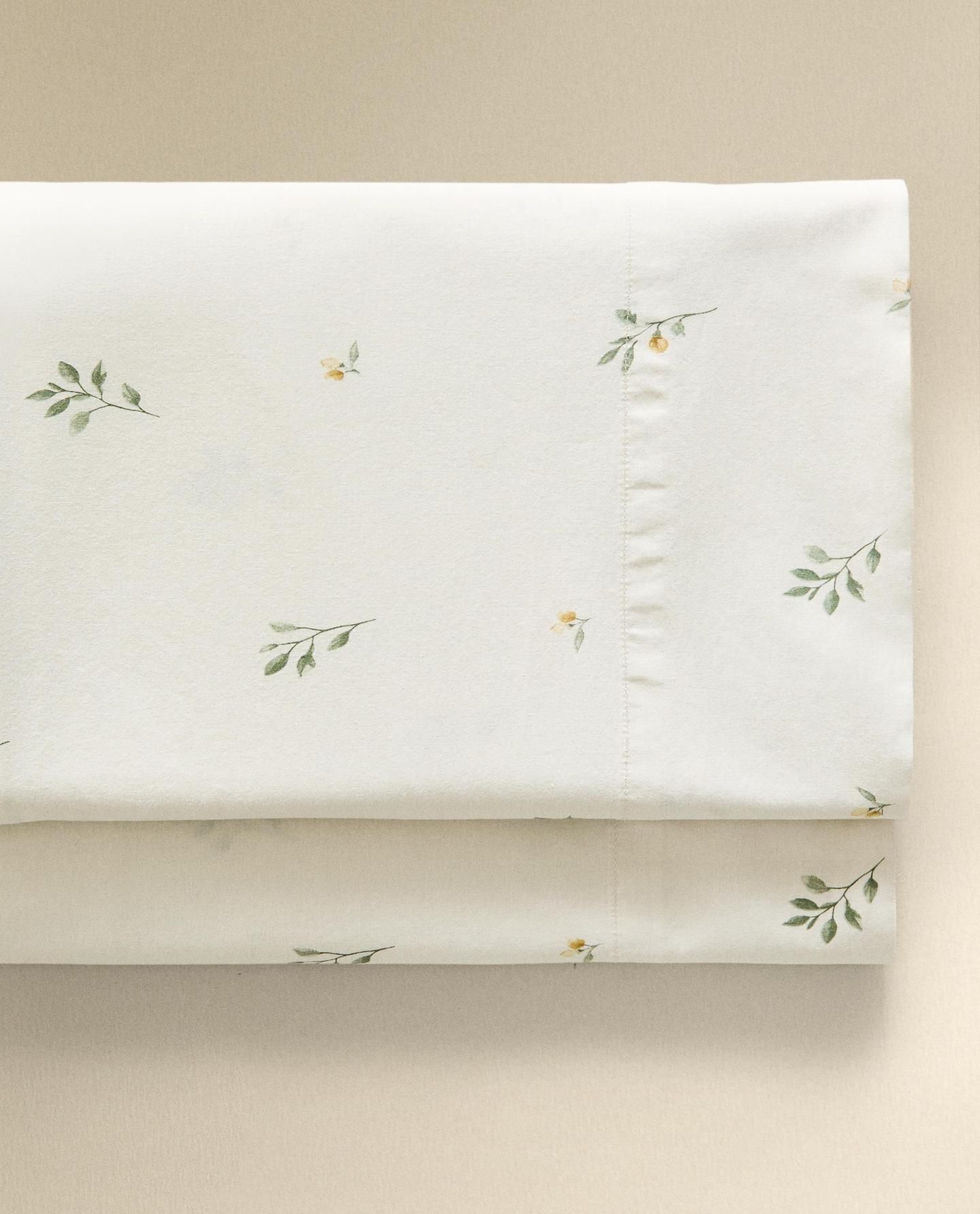 Zara Home - Простыня с изображением листьев, зеленый, 210x280 см