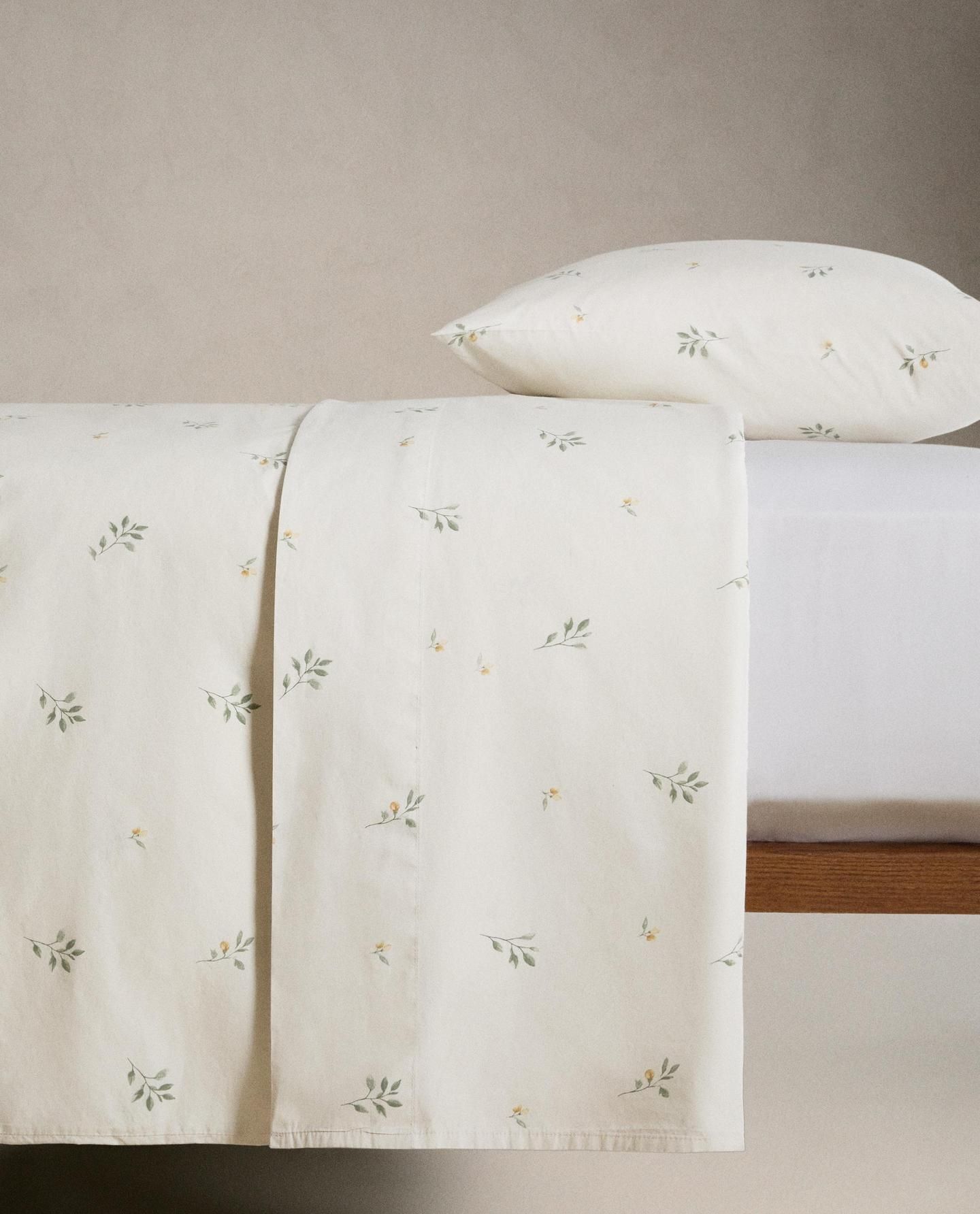 Zara Home - Простыня с изображением листьев, зеленый, 240x280 см