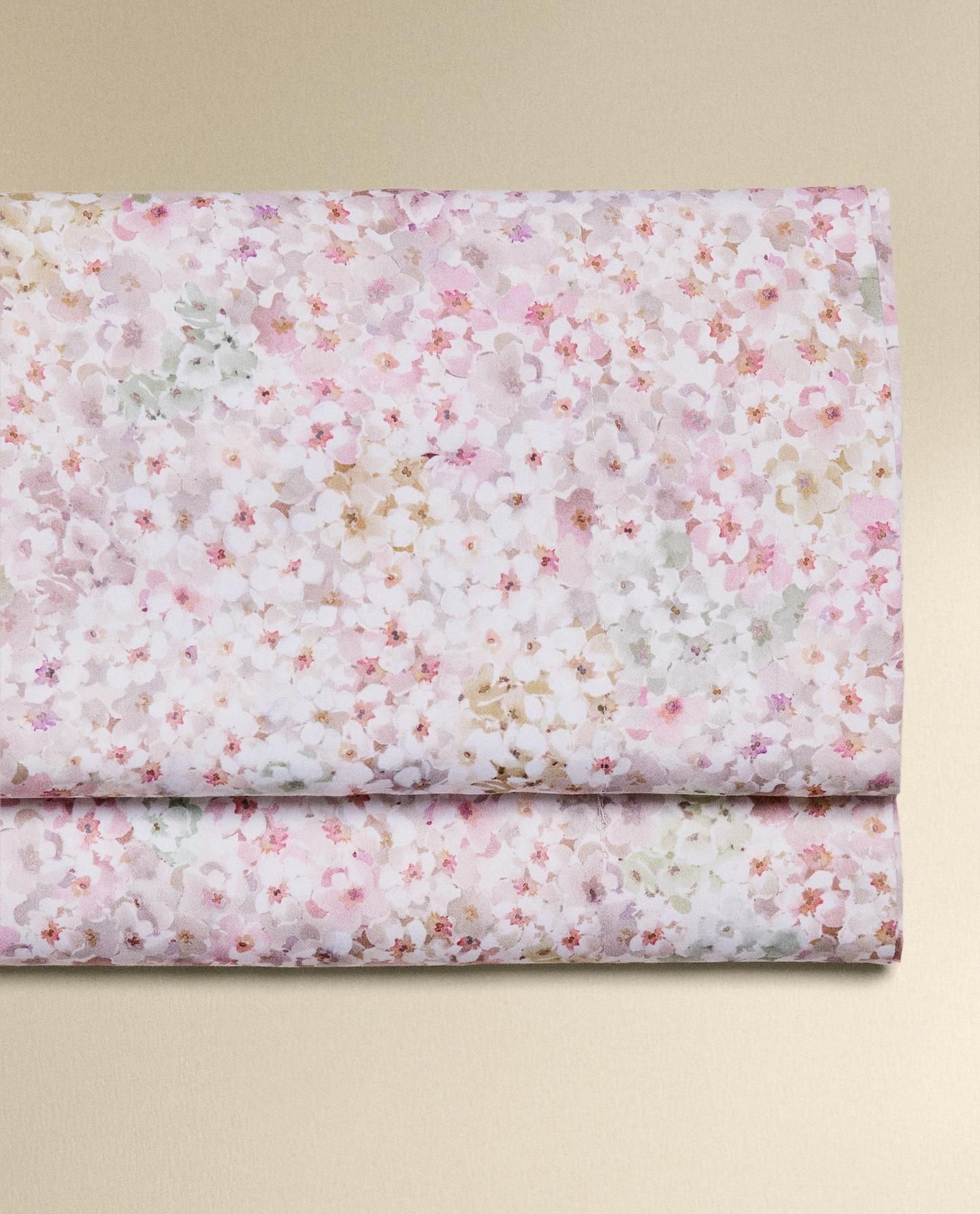 Простыня из хлопкового атласа 300 нитей, с цветочным принтом с эффектом акварели.