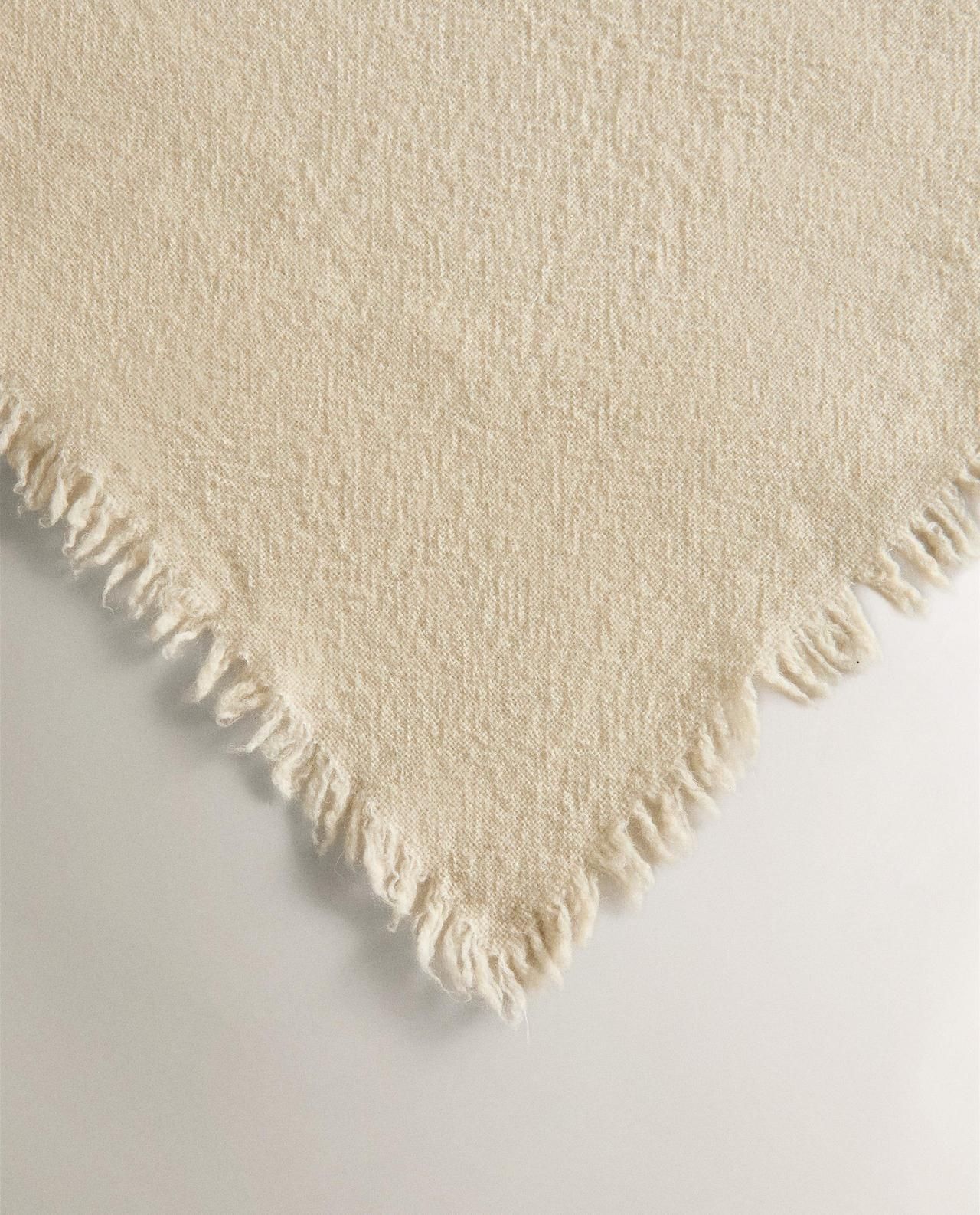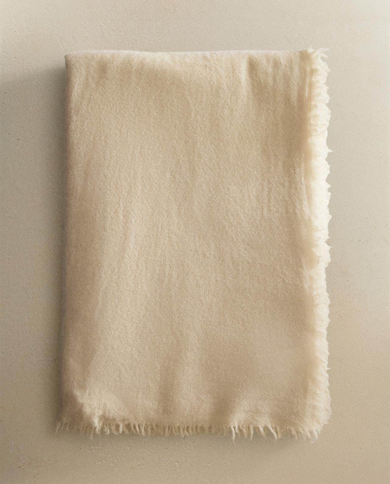 Декоративное одеяло из шерсти, однотонное и отделанное бахромой.