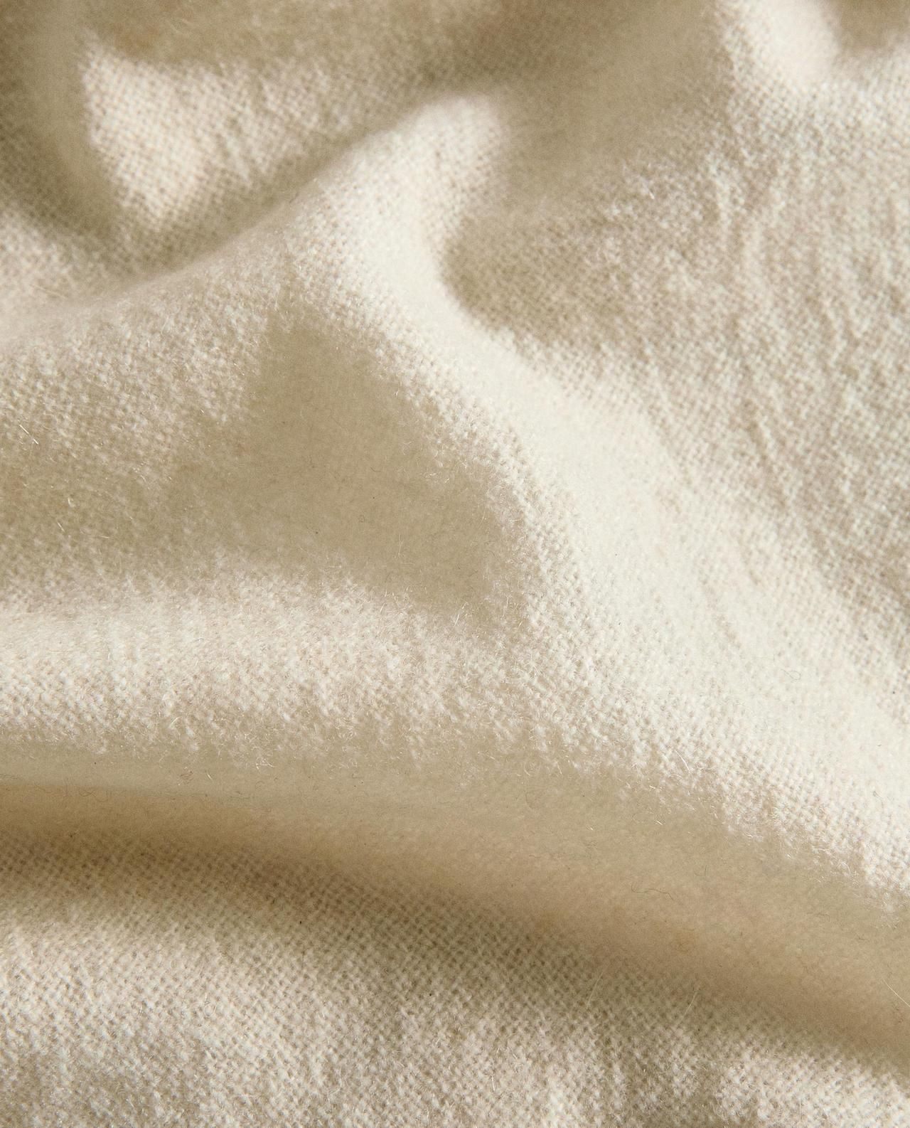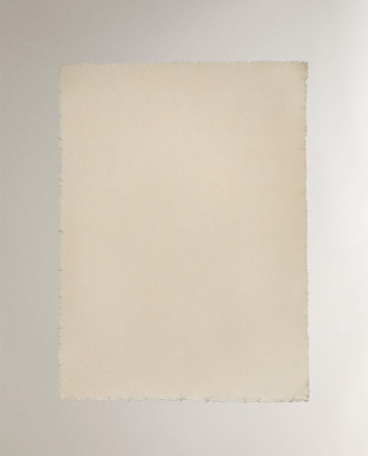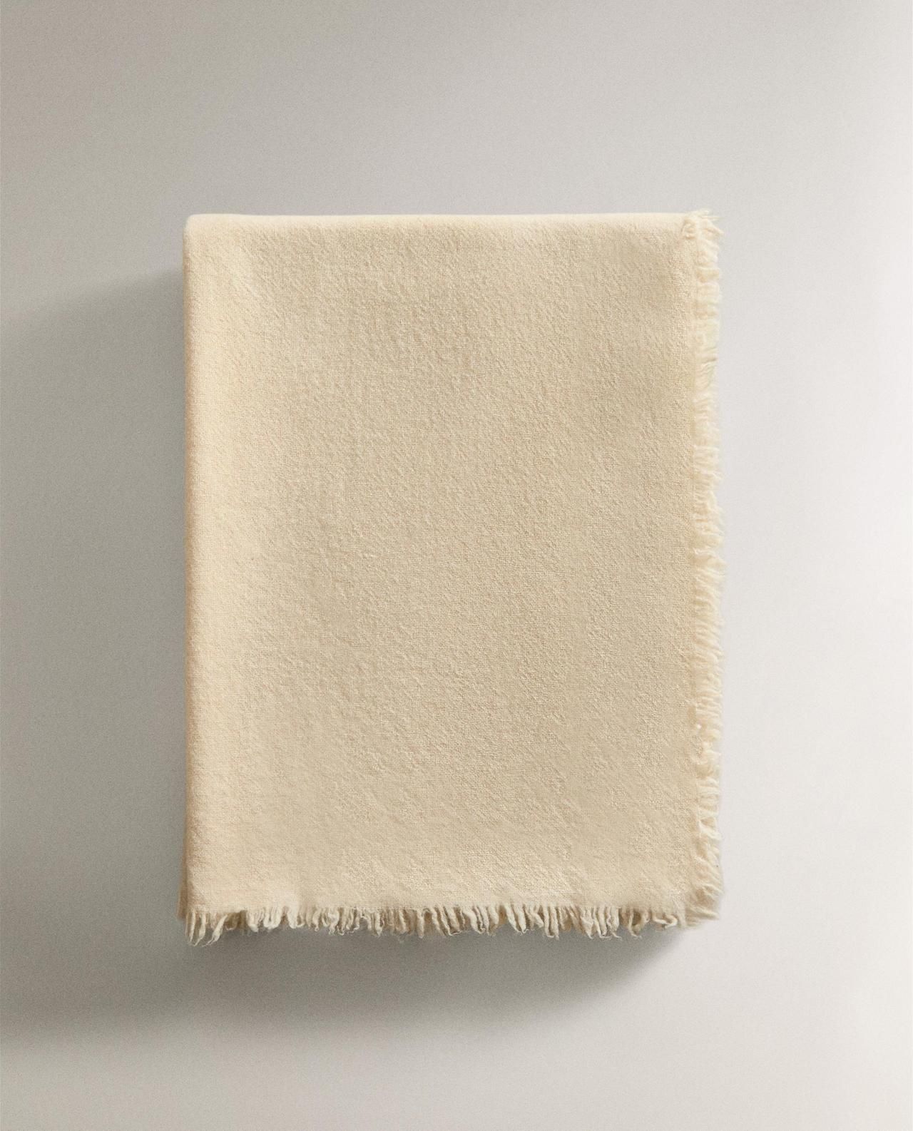 Декоративное одеяло из шерсти, однотонное и отделанное бахромой.
