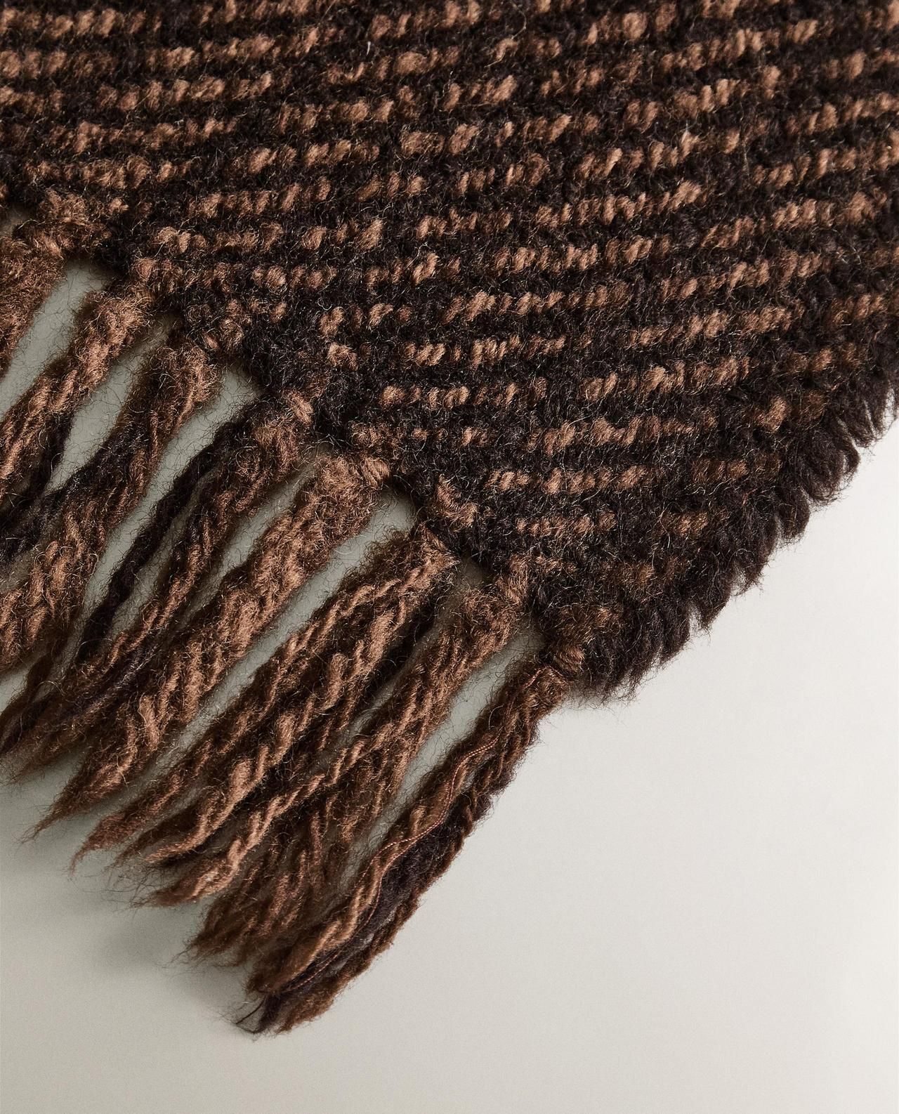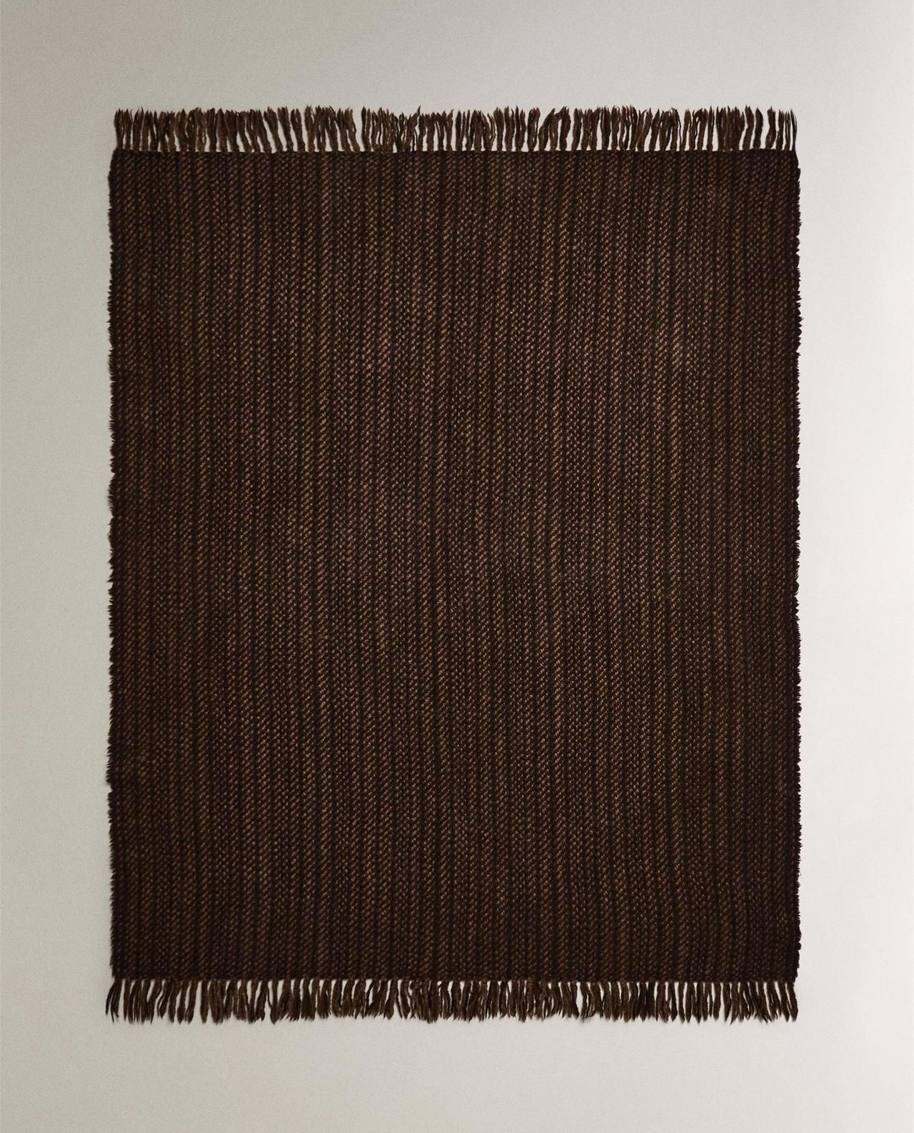 Декоративное одеяло из шерсти, с геометрическими мотивами и отделкой бахромой.