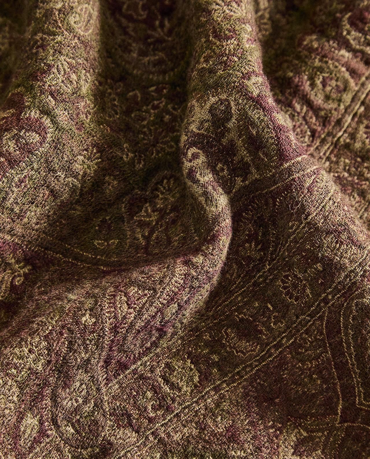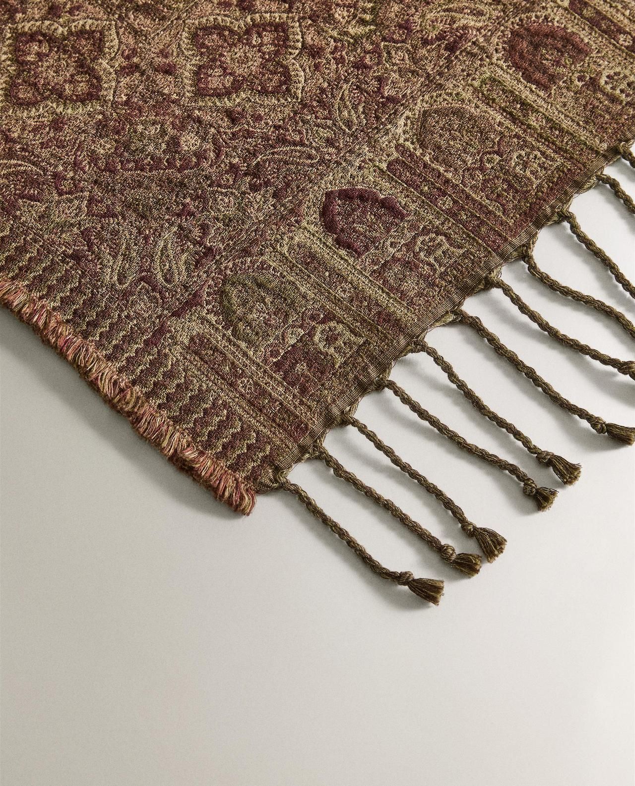 Хлопковое одеяло с бахромой на концах, украшенное рисунком пейсли по всей поверхности.
