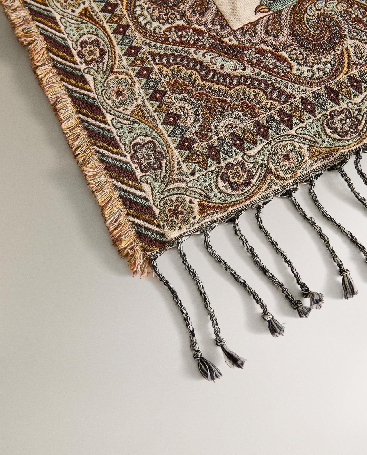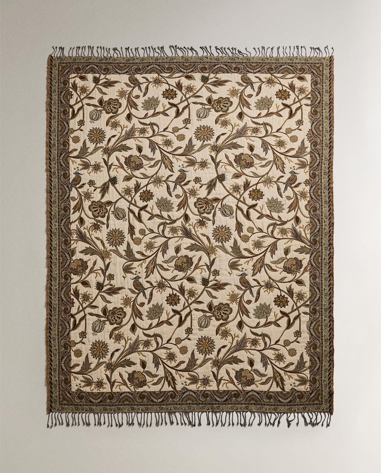 Zara Home - Жаккардовый цветочный плед, зеленый, 140x190 см