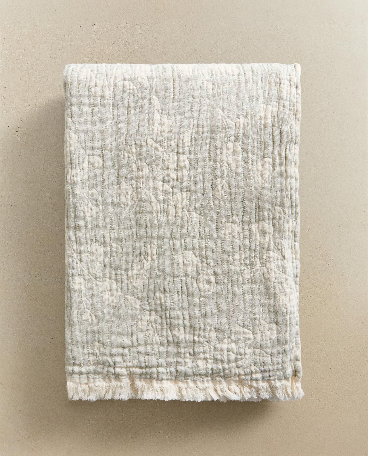 Zara Home - Жаккардовый цветочный плед, зеленый, 140x190 см