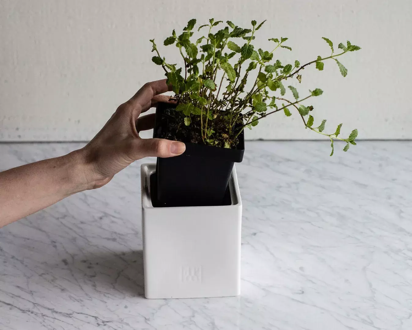 Классический керамический контейнер с квадратным основанием изготовлен из высококачественного материала, обожженного при высокой температуре, благодаря чему он чрезвычайно прочен. Белое остекление придало ему универсальный вид и обеспечило защиту от выцветания.