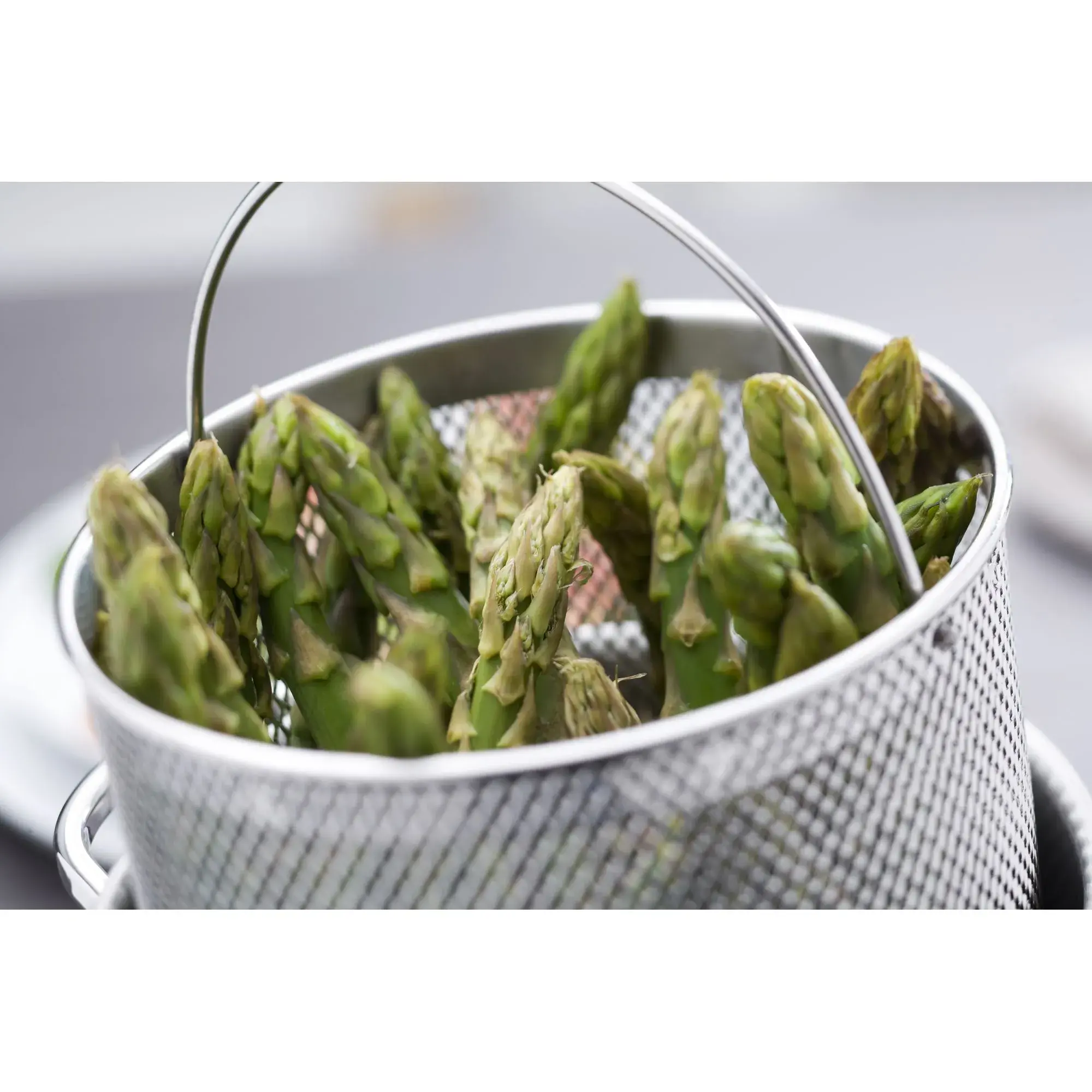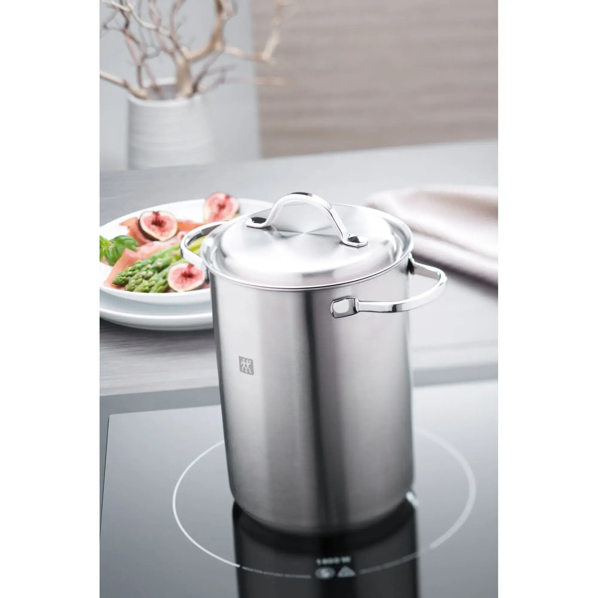 Кастрюля для спаржи и макарон диаметром 16 см и объемом 4,5 л от немецкого бренда Zwilling отличается специфической формой, которая имеет вытянутую форму, чтобы обеспечить идеальные условия для приготовления как спаржи, так и макарон. Такая форма позволяет закладывать упомянутые ингредиенты в вертикальном положении, поэтому у вас больше не будет проблем с приготовлением пасты для вкусных спагетти.